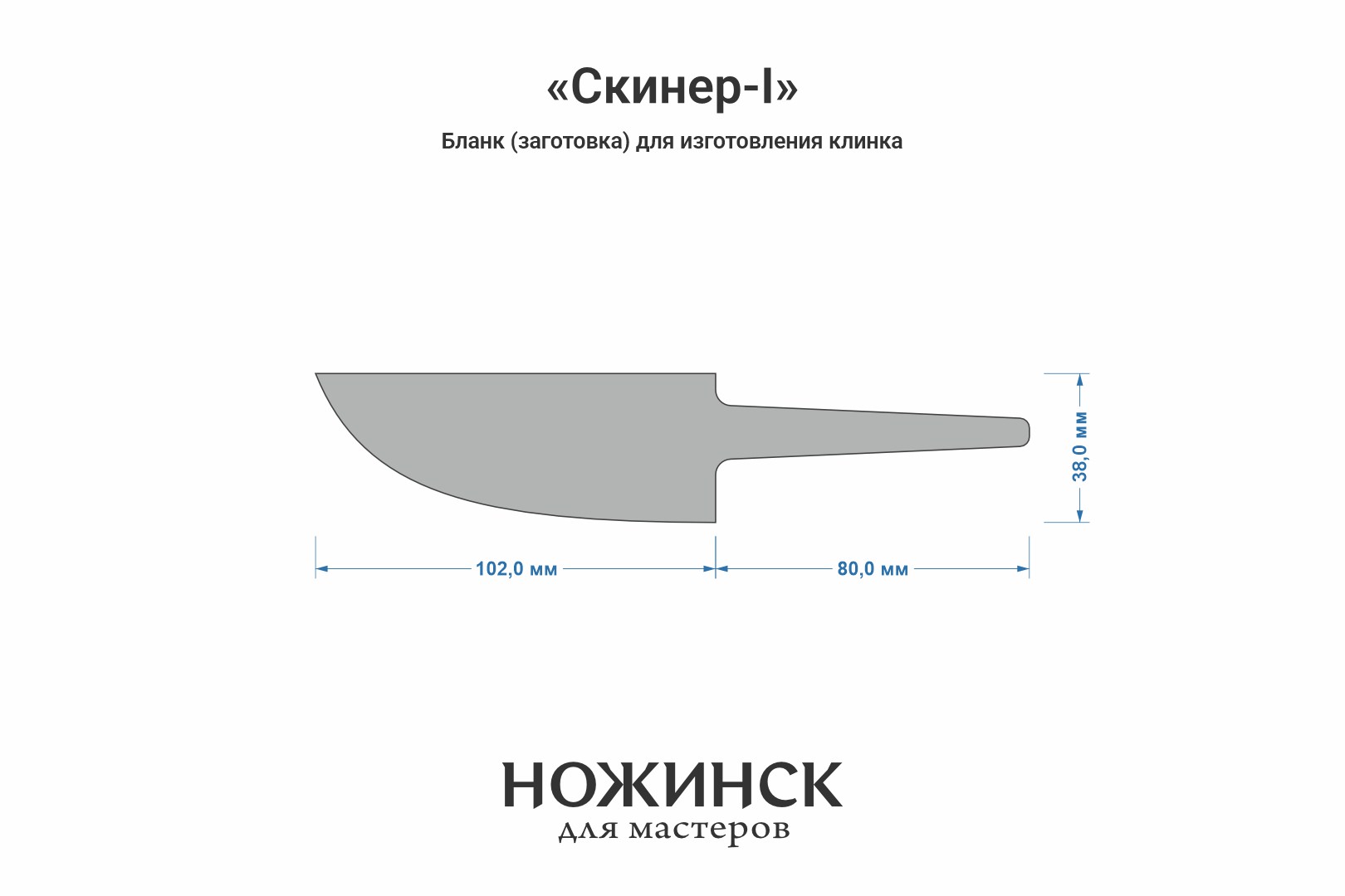Размеры бланка: длина клинковой части 102мм (1-2 мм предусмотрены для посадки больстера), ширина 38мм, длина хвостовика 80мм.