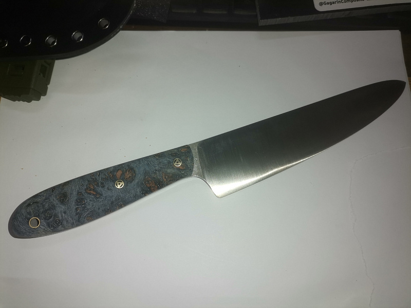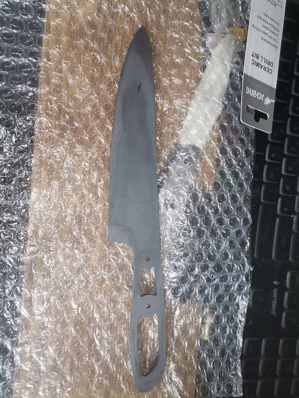Бланк-заготовка для кухонного ножа «Премьер Ш165» из листового проката стали VG-10 Cobalt производства Ahonest Changjiang, вырезан методом гидроабразивной резки.