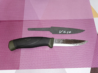 VG-10 – можно считать эталоном и самой популярной сталью для изготовления кухонных ножей премиального сегмента в серийном производстве. Сталь разработана в Японии специально для ножевой индустрии. При высокой износостойкости и твердости сохраняет достаточную ударную вязкость. Проста в заточке и характеризуется агрессивным резом.