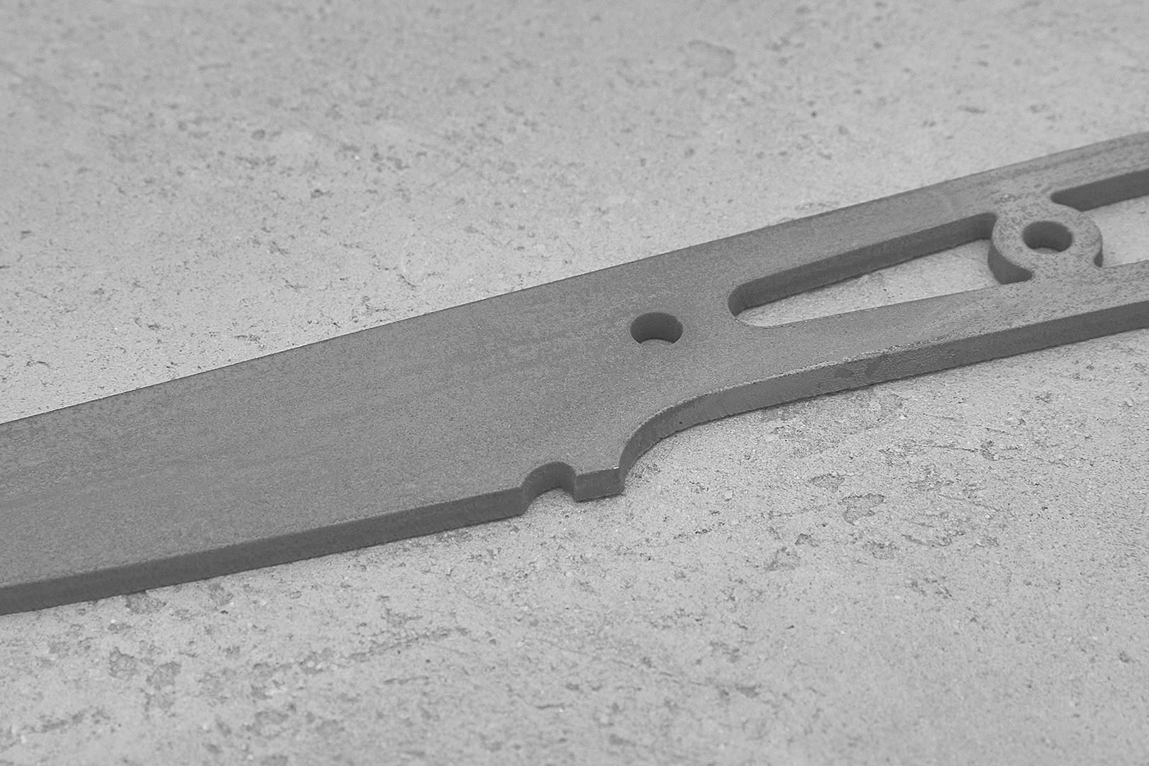 Бланк-заготовка для ножа «ЧелнокЪ» из листового проката стали VG-10 Cobalt производства Ahonest Changjiang, вырезан методом гидроабразивной резки.
