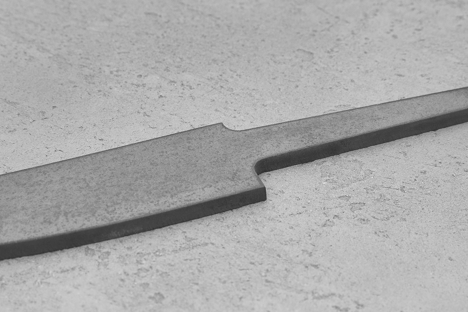 Бланк-заготовка для ножа «Рыбацкий» из листового проката стали VG-10 Cobalt производства Ahonest Changjiang, вырезан методом гидроабразивной резки.