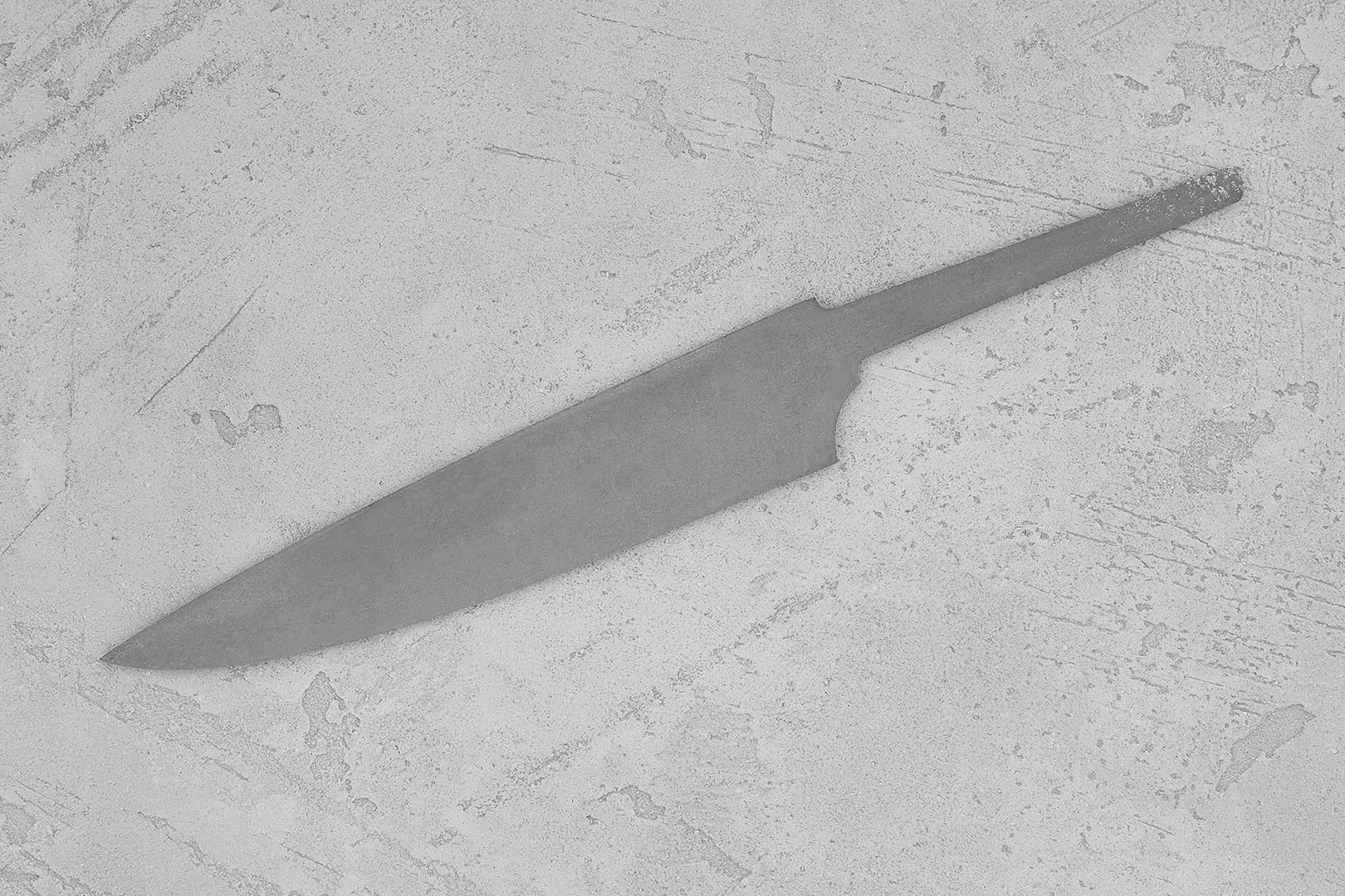 Бланк-заготовка для кухонного ножа «Аппарель О145» из листового проката стали VG-10 Cobalt производства Ahonest Changjiang, вырезан методом гидроабразивной резки.