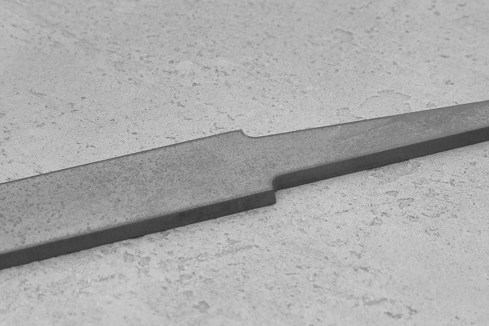 Бланк-заготовка для ножа «Финка Г-I» из листового проката стали VG-10 Cobalt производства Ahonest Changjiang, вырезан методом гидроабразивной резки.