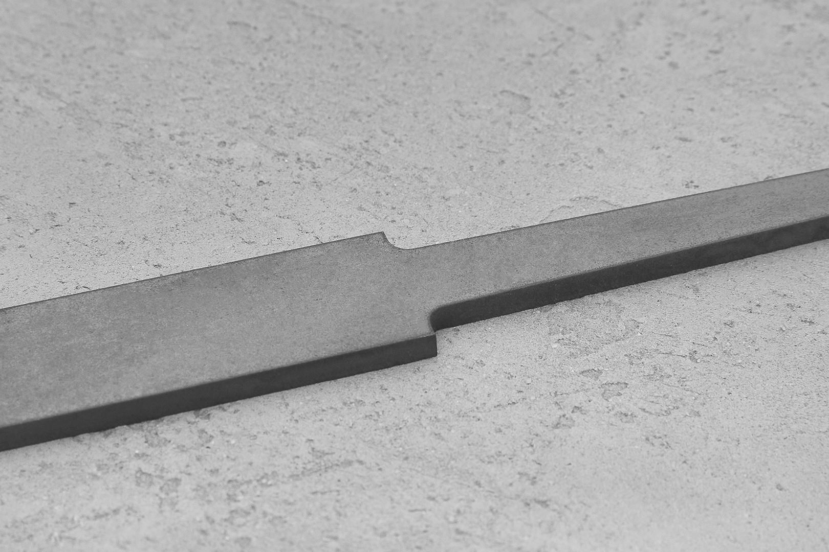 Бланк-заготовка для ножа «Финка Р-I» из листового проката стали VG-10 Cobalt производства Ahonest Changjiang, вырезан методом гидроабразивной резки.