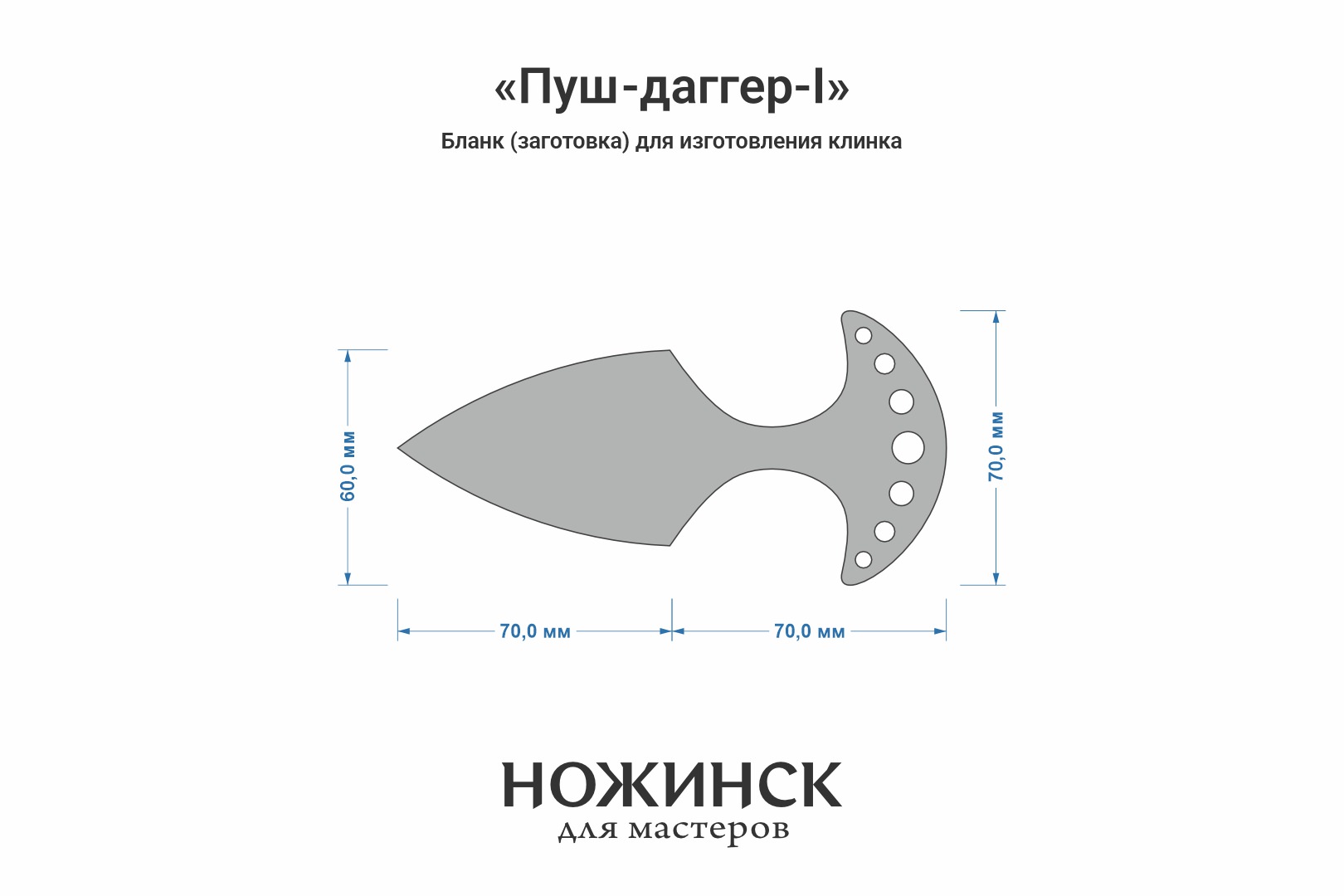 Размеры бланка: длина клинковой части 70мм, ширина 60мм (1мм предусмотрен на контуровку), общая длина заготовки 140мм.