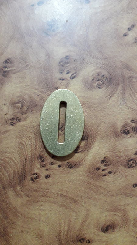 размер монтажного отверстия - 20,0×2,8-3,0 мм. Для удобства подгонки к клинку отверстие чуть клиновидно по толщине.