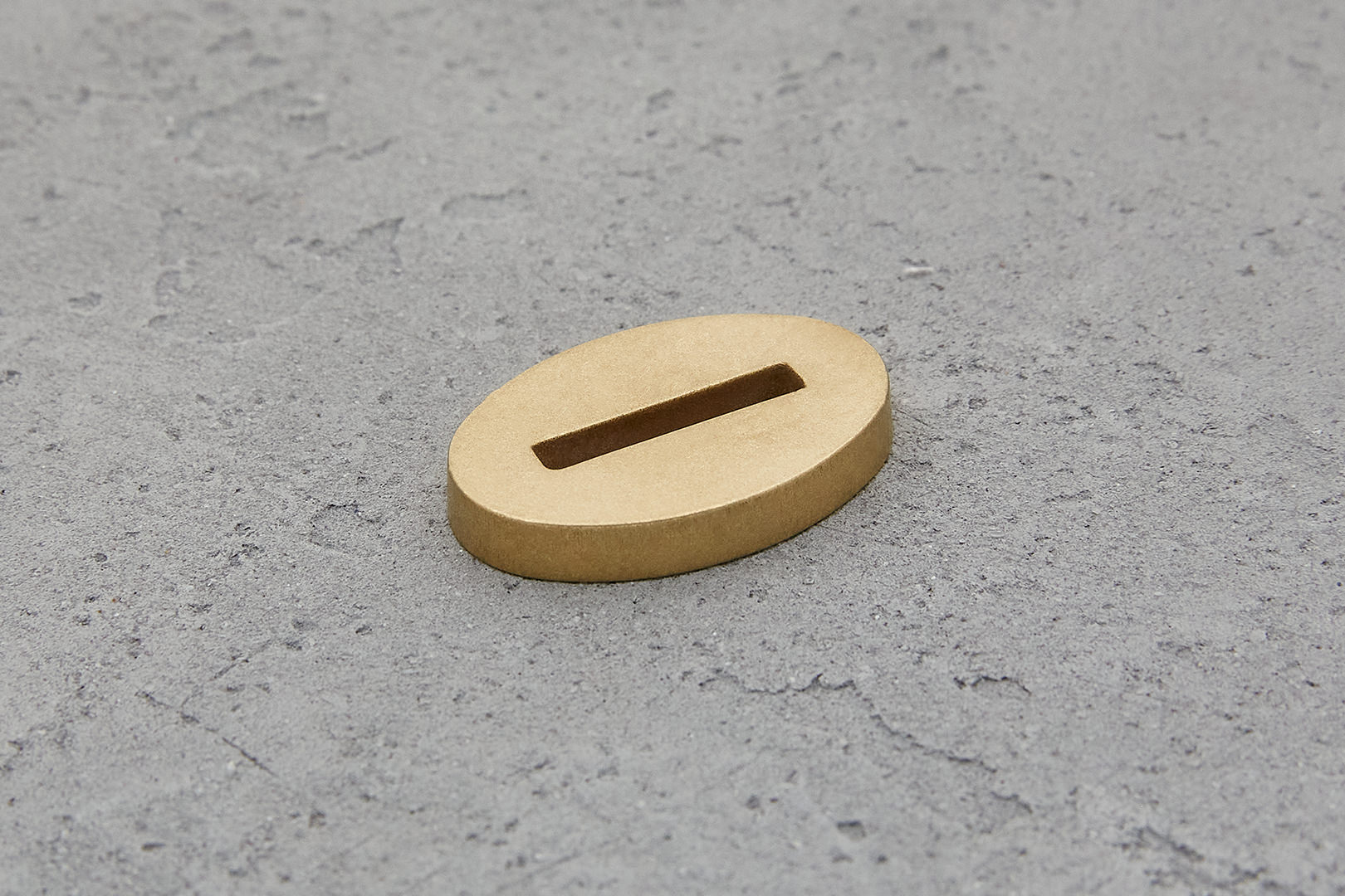 Больстер изготовлен из цветного металла (латунь, медь, титан, мельхиор) и предназначен для сборки ножей с всадным монтажом клинка. Произведен методом гидроабразивной резки с последующей галтовкой.