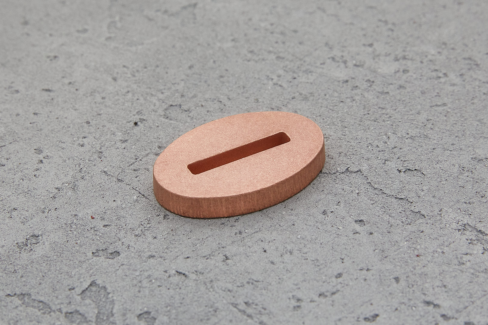 Больстер изготовлен из цветного металла (латунь, медь, титан, мельхиор) и предназначен для сборки ножей с всадным монтажом клинка. Произведен методом гидроабразивной резки с последующей галтовкой.