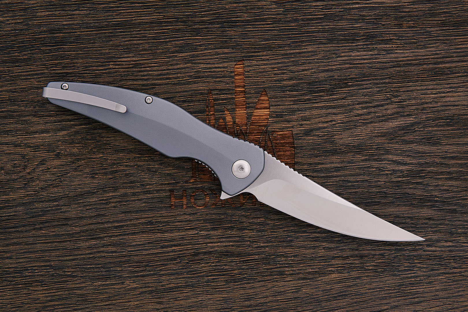 Рукоять ножа отличается удобной формой – она изогнута и имеет подпальцевую выемку ближе к клинку. Выемка, вместе с плавником флиппера, образуют мощную гарду. Формируют рукоятку стальные лайнеры и накладки из анодированного алюминия 6061. Фиксация – на 3-х болтах.