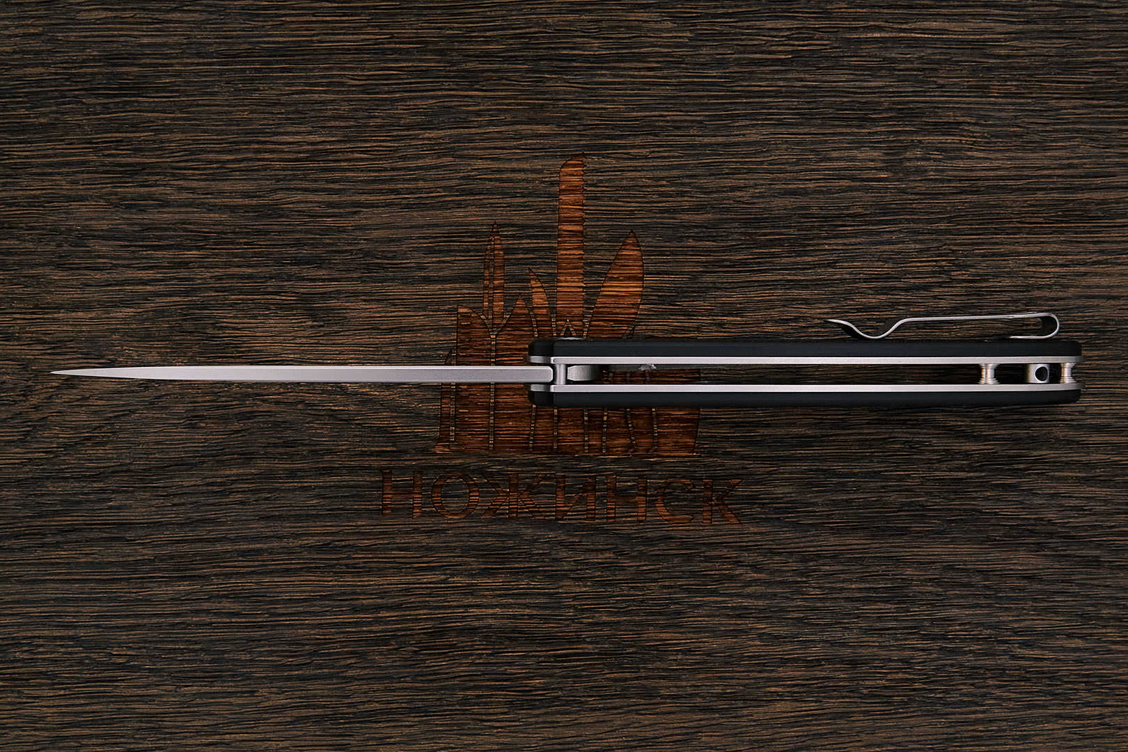 Складной нож для решения повседневных бытовых задач. Узкий клинок средней длины имеет форму drop point, где обух плавно опускается к кончику, образовывая агрессивное острие с отличной проникающей способностью. Такой профиль предназначен для деликатных задач, требующих максимальную остроту и контроль. Раскрытие ножа производится за плавник, выступающий над спинкой рукоятки в закрытом виде и выполняющий роль подпальцевого упора в раскрытом. Осевой узел оборудован керамическими подшипниками, обеспечивающими плавное и легкое открывание. Фиксацию клинка в раскрытом состоянии обеспечивает механизм Liner Lock, а установленный в нем шарик детента защищает от случайного выбрасывания. Рукоятка выполнена в виде текстурированных накладок, позволяющих надежно удерживать нож в ладони при активной работе. Благодаря своему плоскому профилю в закрытом состоянии и клипсе, нож удобно и незаметно помещается в кармане.