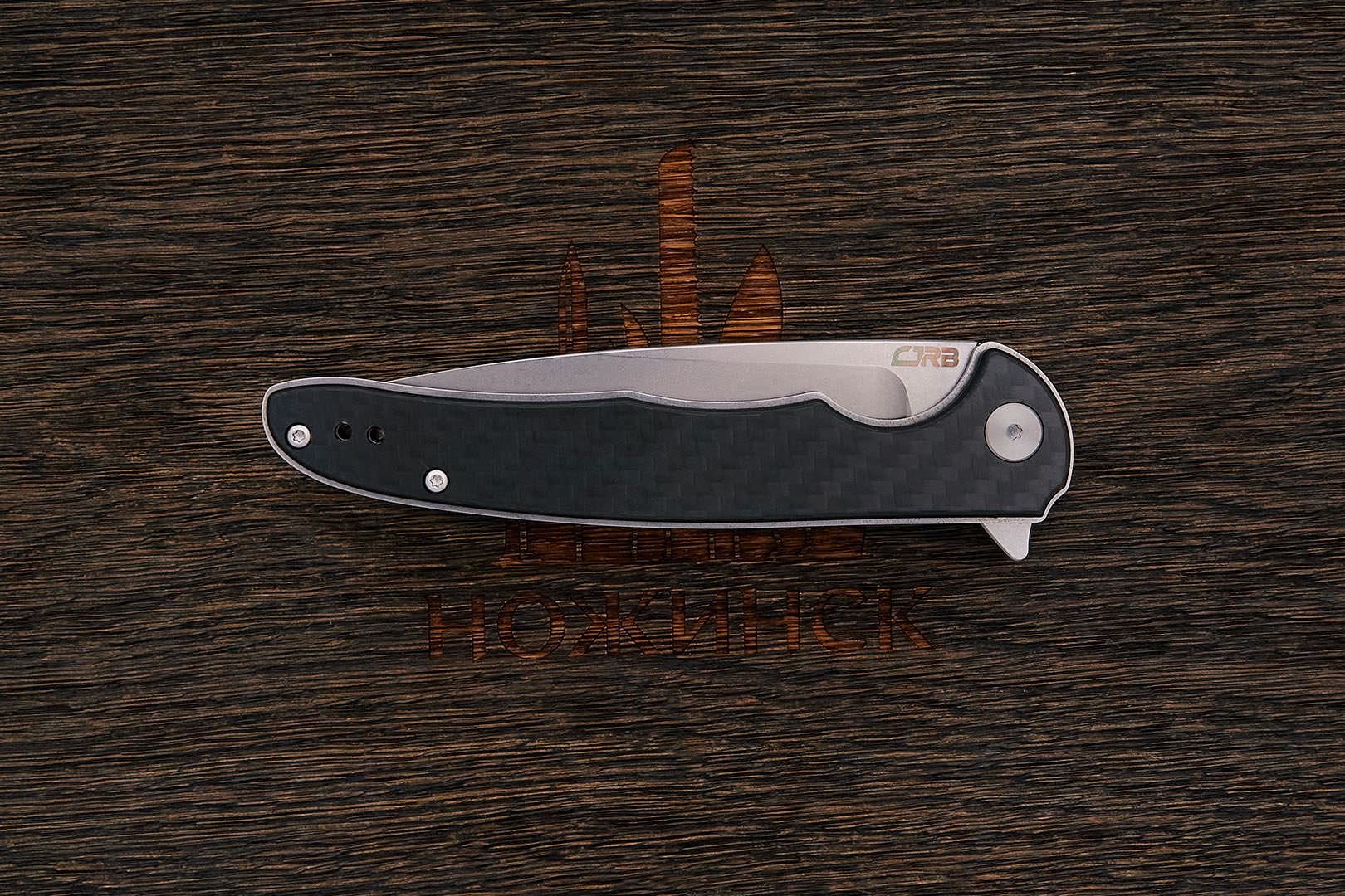 Карбон (Carbon) — современный высокопрочный конструкционный композитный материал из переплетенных нитей углеродного волокна и полимерного связующего вещества. На сегодняшний день карбон один из лучших материалов для изготовления рукоятей ножей. Строгий по фактуре, нейтральный по цвету от светло-серого до почти черного, он практически не скользит в руке. Чрезвычайно прочный, абсолютно не впитывает ни воду, ни запахи, отлично переносит перепады влажности и температуры.