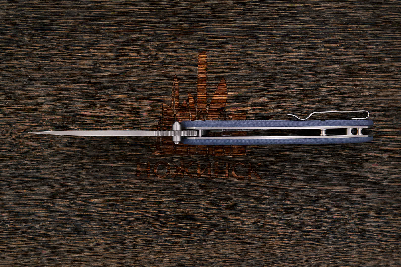 Карманный складной нож с агрессивным дизайном. Узкий клинок средней длины имеет хорошую проникающую способность, благодаря хищной форме drop point с деликатным острием. На обухе выполнена насечка для упора большим пальцем при силовых нагрузках. Раскрытие ножа осуществляется за шпенек на голомени, а керамические подшипники в осевом узле обеспечивают плавный ход. Фиксацию клинка обеспечивает механизм Liner Lock, а установленный в нем шарик детента защищает от случайного выбрасывания. Рукоятка выполнена в виде фигурных текстурированных накладок из композита и оборудована двусторонней клипсой глубокой посадки.