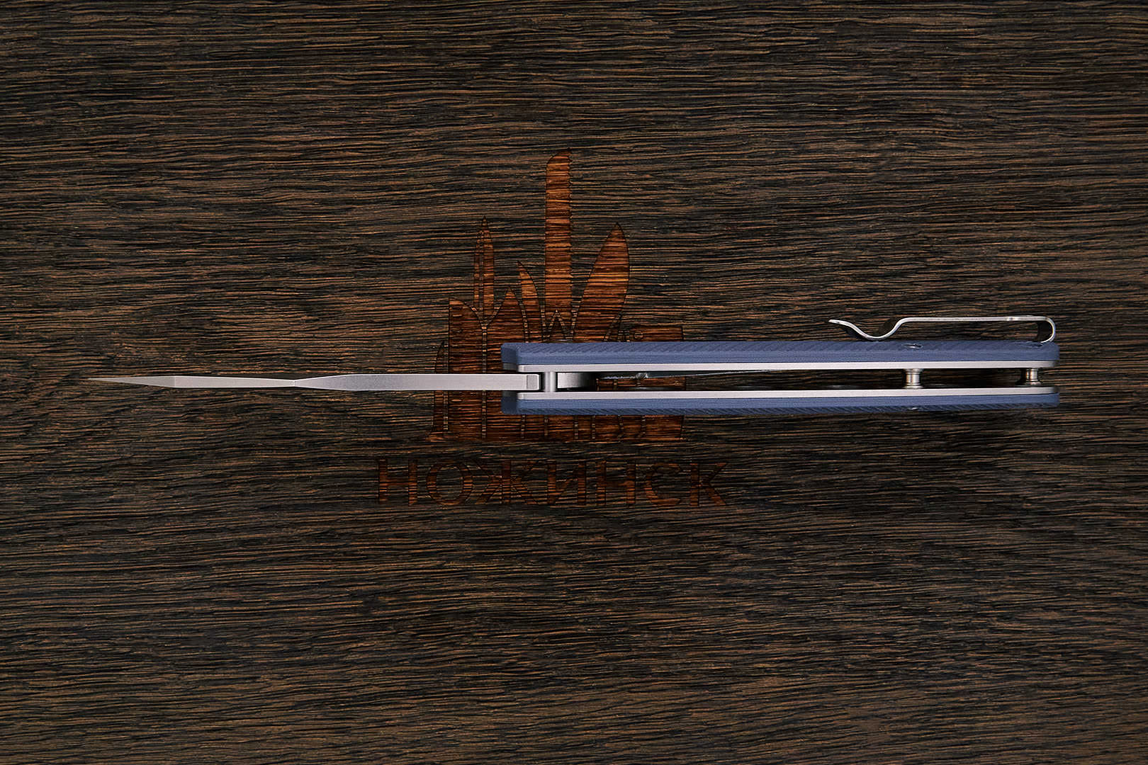 Складной нож оригинальной формы для повседневного ношения. Клинок имеет необычный профиль Wharncliffe с вогнутым обухом для упора при силовых работах и агрессивное острие для деликатных задач, требующих тонкий и контролируемый надрез. Раскрытие ножа производится за плавник, выступающий над спинкой рукоятки в закрытом виде и выполняющий роль подпальцевого упора в раскрытом. Осевой узел оборудован керамическими подшипниками, обеспечивающими плавное и легкое открывание. Фиксацию клинка в раскрытом состоянии обеспечивает механизм Liner Lock, а установленный в нем шарик детента защищает от случайного выбрасывания. Рукоятка выполнена в виде накладок из текстурированного композита и оборудована реверсивной двусторонней клипсой для крепления при ношении в кармане.