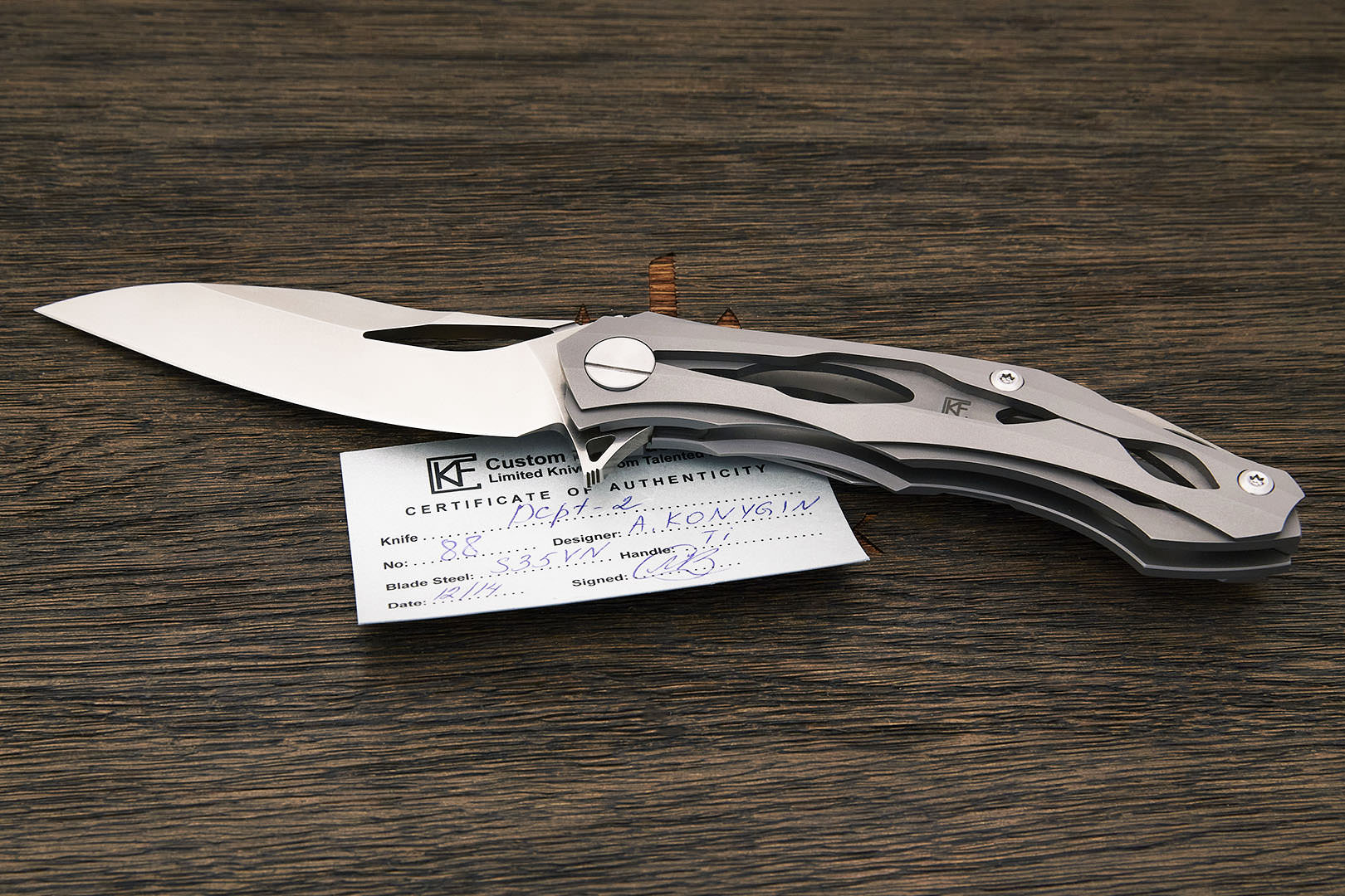 CPM S35VN – рестайлинговая версия хорошо зарекомендовавшей себя порошковой стали S30V от американского концерна Crucible Industries. Особенностью этой стали является легирование ниобием, что становится модной тенденцией и обеспечивает несколько лучшую механику. За счет мелких карбидов ниобия S35VN на 15-20% более прочная и износостойкая, чем S30V, хотя стали и находятся в одной ценовой категории. Благодаря ниобию клинки из S30VN превосходно держат заточку. Сталь активно применяется ножевыми компаниями по всему миру в среднем ценовом сегменте.