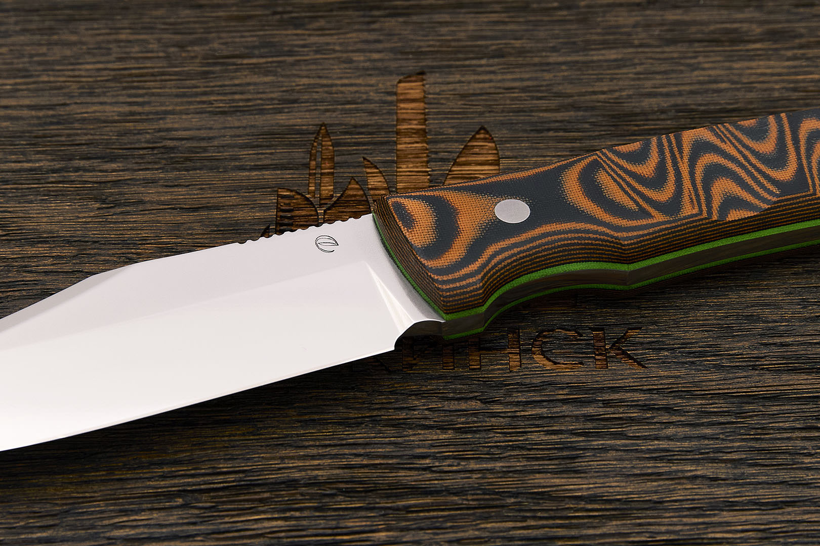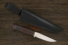 Микарта – очень прочный конструкционный материал, представляющий собой слоистый пластик на основе ткани и фенолформальдегидных или эпоксидных смол. Слои ткани пропитываются и склеиваются под высоким давлением и температурой. Благодаря совокупности потребительских свойств micarta (текстолит) прекрасно подходит для изготовления рукоятей ножей. Прочная, не впитывает ни воду, ни запахи, тактильная и высоко декоративная за счет разнообразия текстур и цветов. По теплопроводности микарта близка к натуральному дереву, что позволяет достаточно комфортно использовать ножи на сильном морозе.