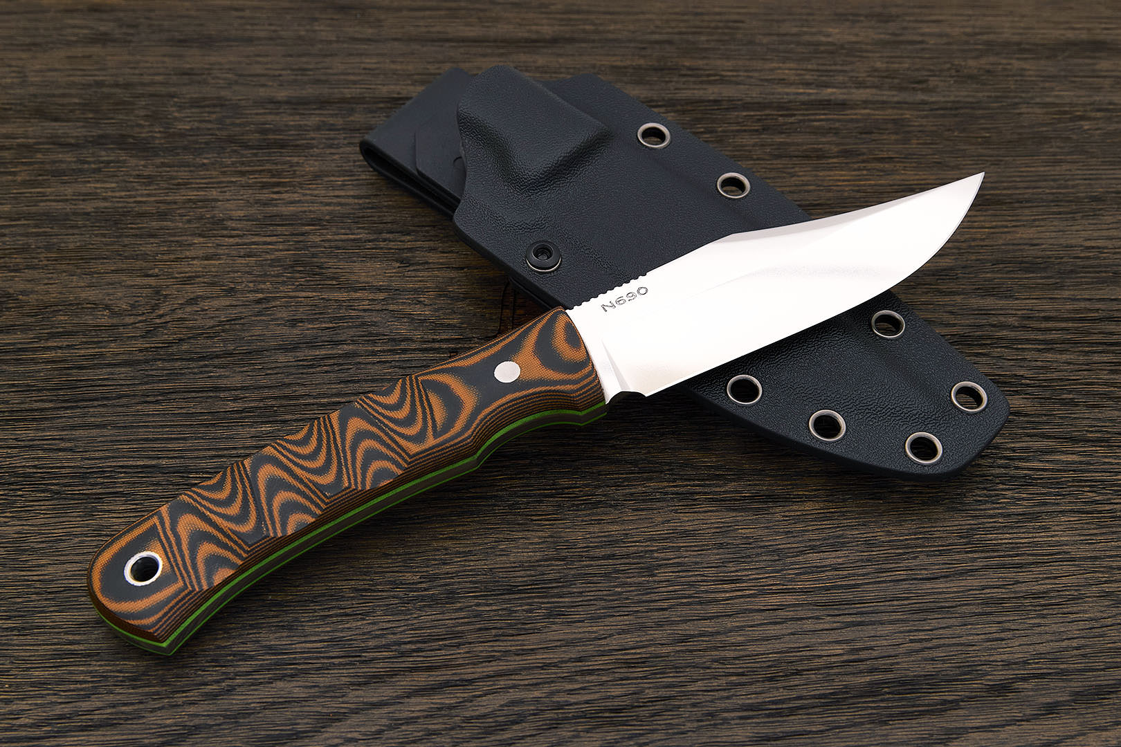 N690Co (N690) – коррозионностойкая немецкая инструментальная сталь производства Bohler-Uddeholm AG. Легирование кобальтом позволило улучшить сопротивляемость к высоким температурам и повысить общие механические качества.