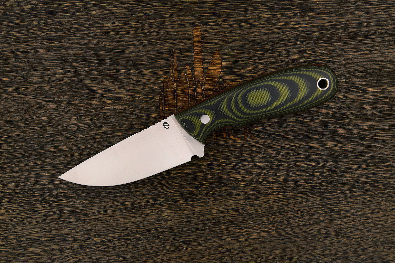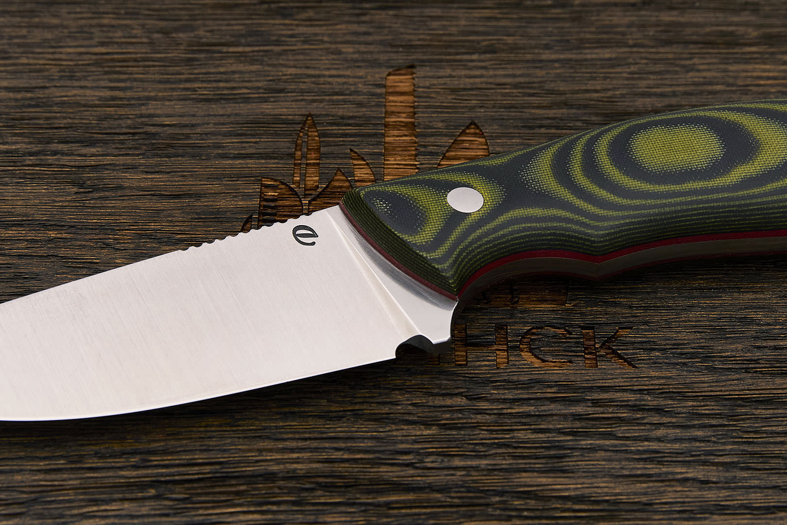 Elmax – одна из лучших инструментальных коррозионностойких порошковых сталей. Выпускается австрийско-шведской компанией Böhler-Uddeholm по технологии третьего поколения (superclean), что означает повышенную чистоту и вязкость. В составе карбиды небольшого размера, которые способствуют агрессивному резу. Сталь не капризна в заточке, долго удерживает остроту режущей кромки. При качественной термообработке Elmax всегда превосходит аналоги по вязкости, устойчива к воздействию внешней среды. Такой комплекс свойств обеспечивает изготовленным из нее ножам отличные потребительские качества.