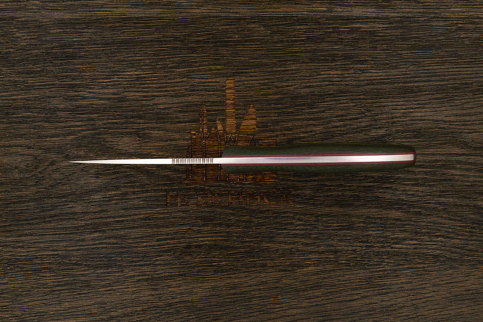Микарта – очень прочный конструкционный материал, представляющий собой слоистый пластик на основе ткани и фенолформальдегидных или эпоксидных смол. Слои ткани пропитываются и склеиваются под высоким давлением и температурой. Благодаря совокупности потребительских свойств micarta (текстолит) прекрасно подходит для изготовления рукоятей ножей. Прочная, не впитывает ни воду, ни запахи, тактильная и высоко декоративная за счет разнообразия текстур и цветов. По теплопроводности микарта близка к натуральному дереву, что позволяет достаточно комфортно использовать ножи на сильном морозе.