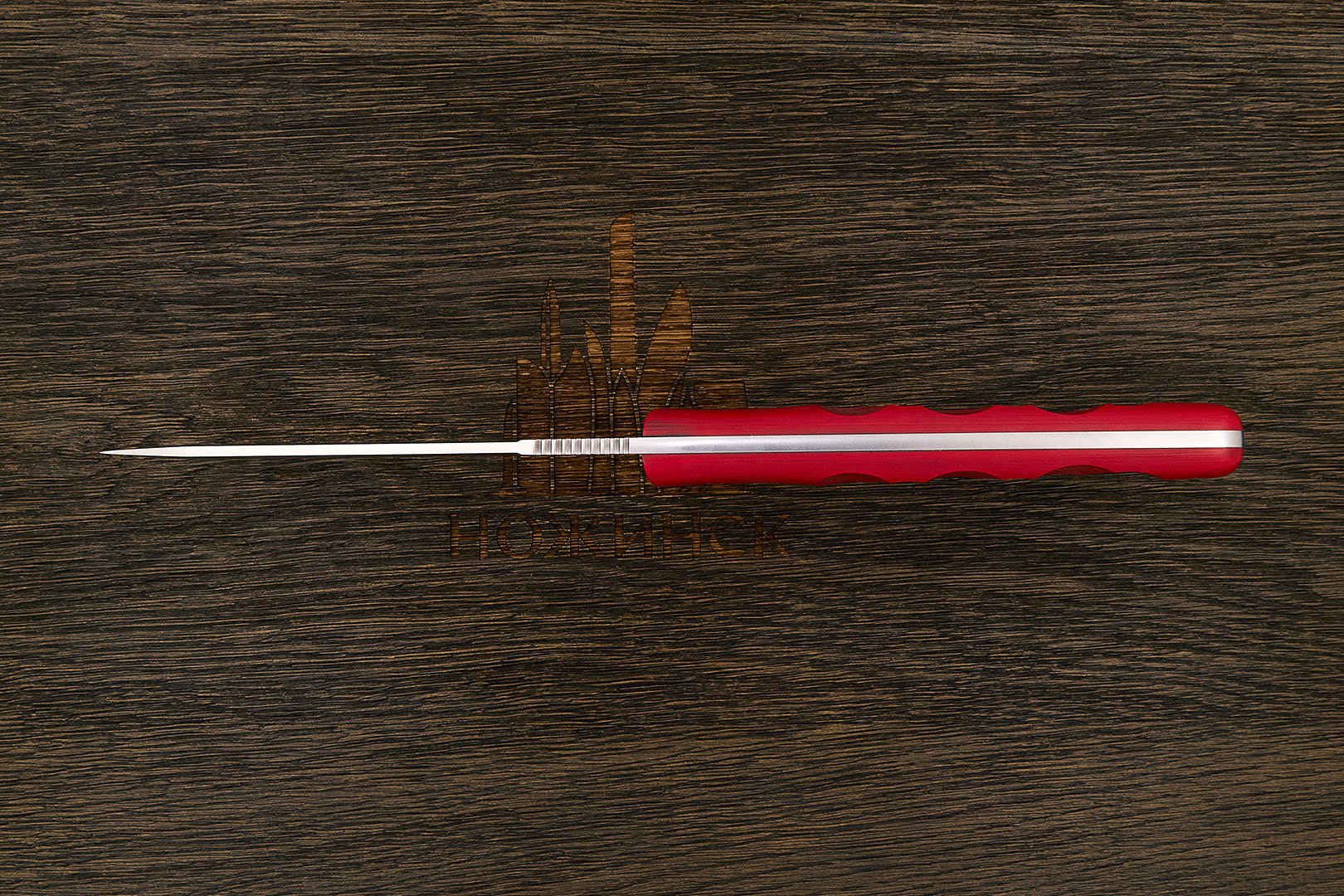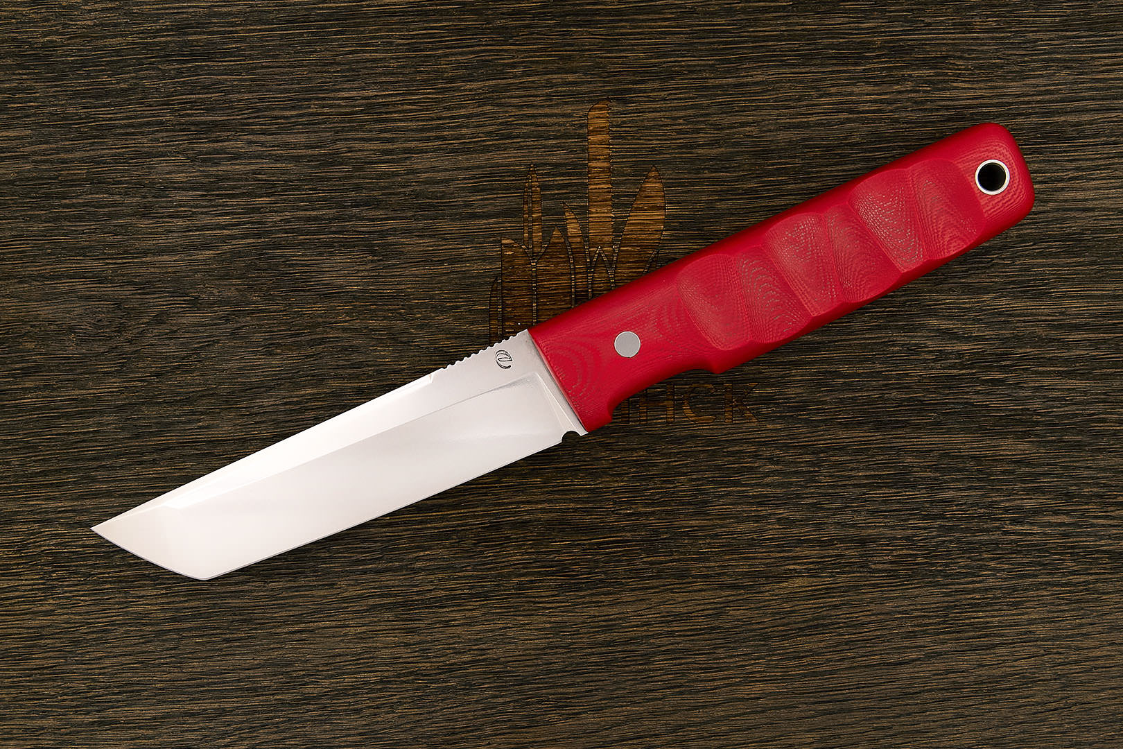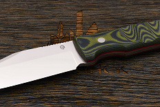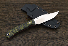 Микарта – очень прочный конструкционный материал, представляющий собой слоистый пластик на основе ткани и фенолформальдегидных или эпоксидных смол. Слои ткани пропитываются и склеиваются под высоким давлением и температурой. Благодаря совокупности потребительских свойств micarta (текстолит) прекрасно подходит для изготовления рукоятей ножей. Прочная, не впитывает ни воду, ни запахи, тактильная и высоко декоративная за счет разнообразия текстур и цветов. По теплопроводности микарта близка к натуральному дереву, что позволяет достаточно комфортно использовать ножи на сильном морозе.