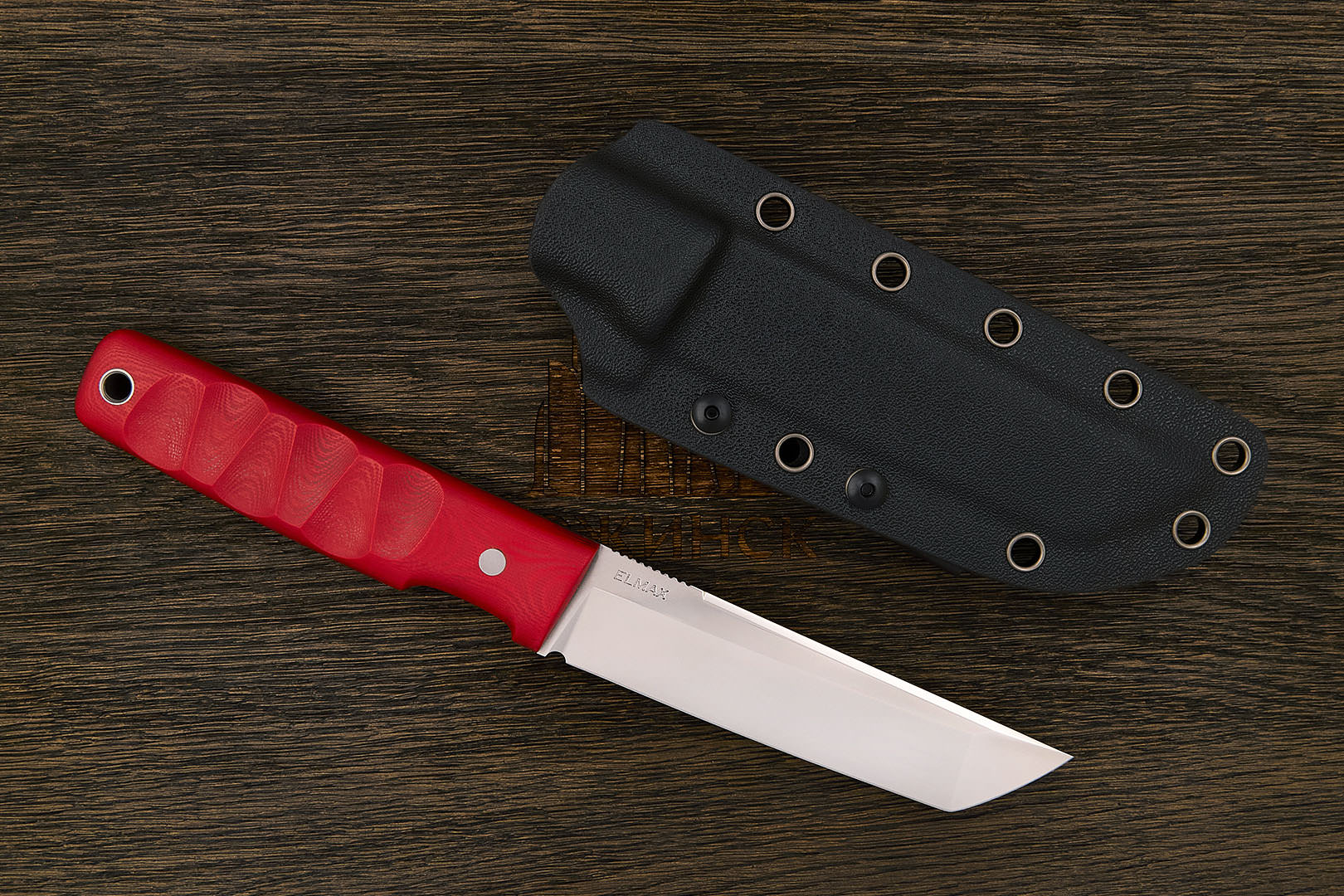 Elmax – одна из лучших инструментальных коррозионностойких порошковых сталей. Выпускается австрийско-шведской компанией Böhler-Uddeholm по технологии третьего поколения (superclean), что означает повышенную чистоту и вязкость. В составе карбиды небольшого размера, которые способствуют агрессивному резу. Сталь не капризна в заточке, долго удерживает остроту режущей кромки. При качественной термообработке Elmax всегда превосходит аналоги по вязкости, устойчива к воздействию внешней среды. Такой комплекс свойств обеспечивает изготовленным из нее ножам отличные потребительские качества.