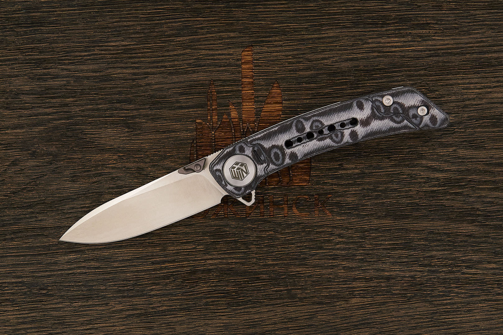 Микарта – очень прочный конструкционный материал, представляющий собой слоистый пластик на основе ткани и фенолформальдегидных или эпоксидных смол. Слои ткани пропитываются и склеиваются под высоким давлением и температурой. Благодаря совокупности потребительских свойств micarta (текстолит) прекрасно подходит для изготовления рукоятей ножей. Прочная, не впитывает ни воду, ни запахи, тактильная и высоко декоративная за счет разнообразия текстур и цветов. По теплопроводности микарта близка к натуральному дереву, что позволяет достаточно комфортно использовать ножи на сильном морозе.