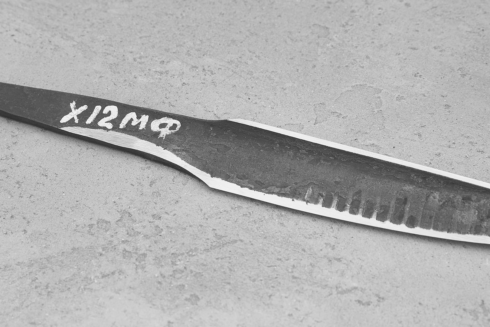 Х12МФ – высоколегированная условно коррозионностойкая сталь российского производства. Аналог американской D2. В состав стали входят молибден, ванадий, никель и другие. Сочетание элементов придает стали отличную прочность, упругость, устойчивость к воздействию температур, износоустойчивость.