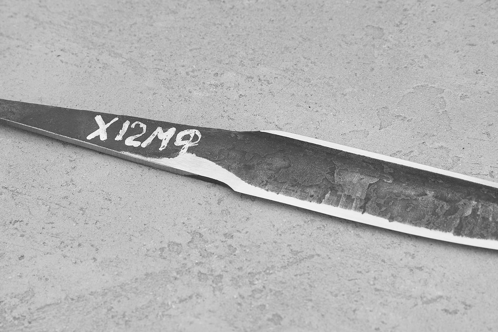 Х12МФ – высоколегированная условно коррозионностойкая сталь российского производства. Аналог американской D2. В состав стали входят молибден, ванадий, никель и другие. Сочетание элементов придает стали отличную прочность, упругость, устойчивость к воздействию температур, износоустойчивость.