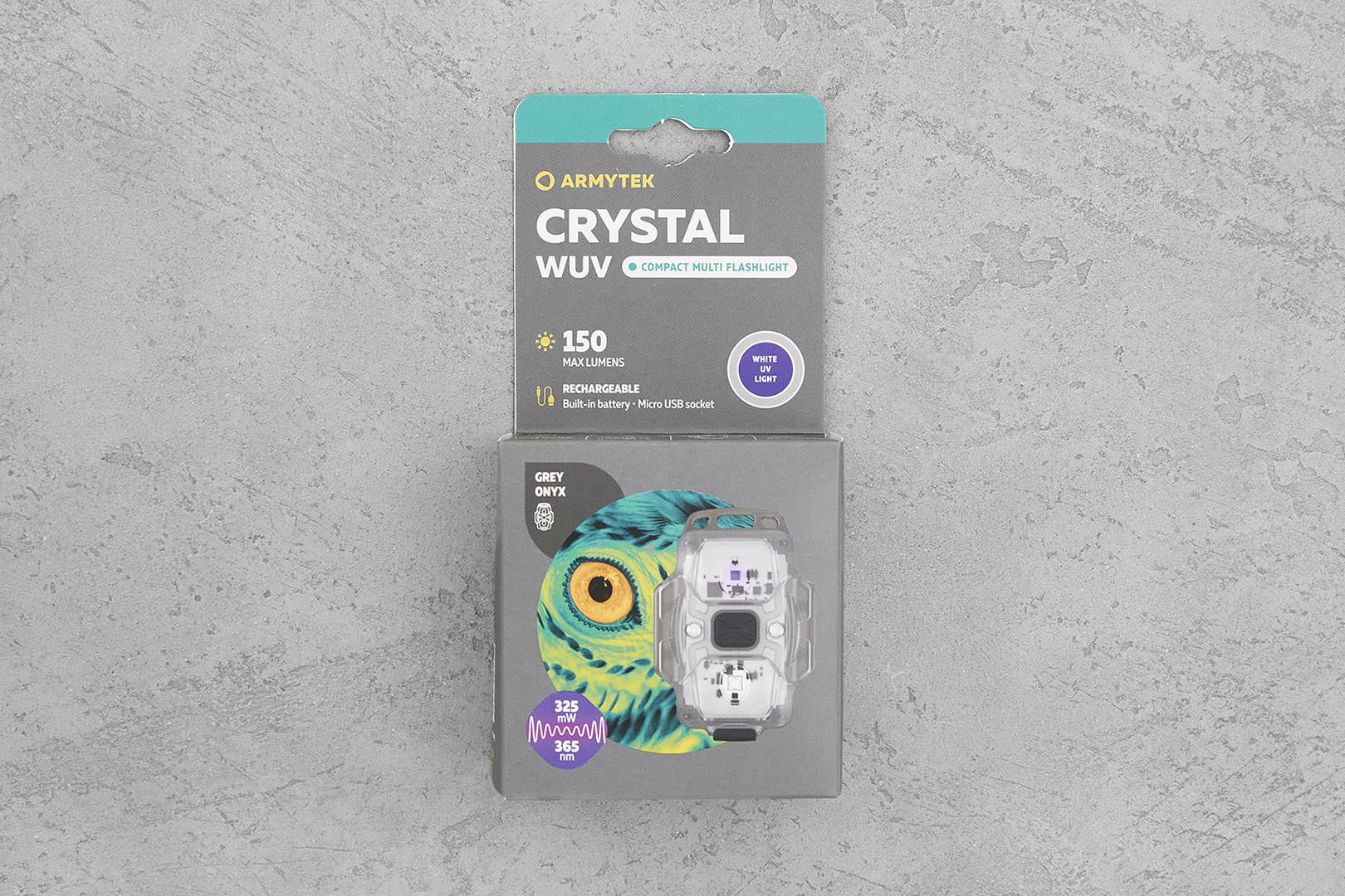 Crystal Pro - легкий (34г), компактный фонарь для повседневного использования, а так же для туризма и велопрогулок. Два варианта света: белый и ультрафиолетовый, с легким и понятным переключением между ними. Белый свет дает широкий угол засветки что способствует прекрасному освещению на небольшом расстоянии. Ультрафиолетовый свет подходит для чтения скрытых надписей и меток, выявления бытовых пятен и поиска утечек технических жидкостей с помощью флуоресцентного маркера. В каждом из цветов - 5 режимов работы. Богатая комплектация (клипса, наголовное крепление, крепление для велосипеда, отверстия для темляка или кольца ключей) значительно расширяет сферу применения фонаря и делает его практически универсальным инструментом. И при всем этом он занимает крайне мало места в кармане, сумке, рюкзаке. Зарядка осуществляется через Micro USB , а значит вам не придется беспокоиться о запасе батареек.