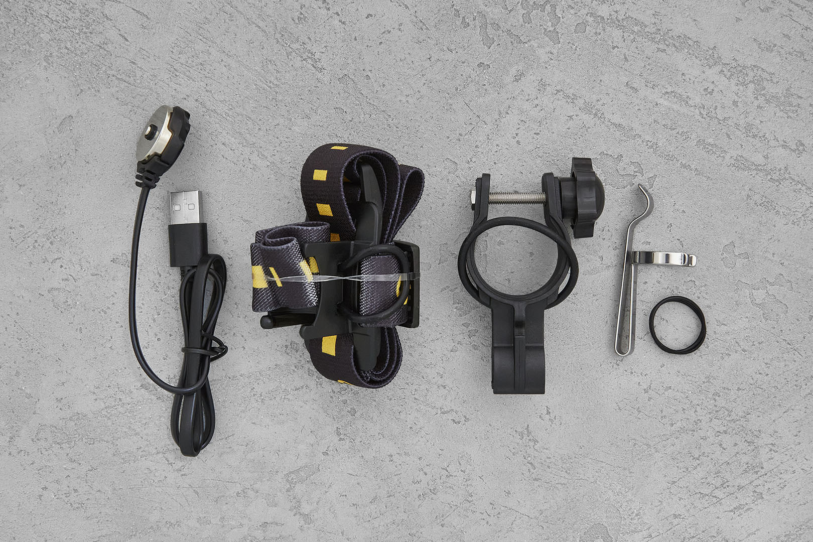 В комплект входит комфортное налобное крепление, клипса для фиксации на одежде или рюкзаке и велокрепление. Wizard C2 Pro совместим с креплением на каску и подходит для строительных работ.