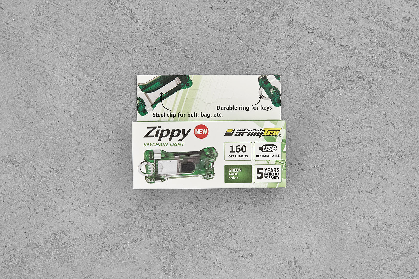 Небольшой и в то же время прочный, фонарь-брелок Armytek Zippy всегда под рукой и пригодится там, где требуется дополнительный источник света. Встроенный Li-Pol аккумулятор быстро заряжается с помощью Micro-USB кабеля. Стальное кольцо и съемная клипса позволяют носить его в разных вариантах: на ключах, одежде или рюкзаке, в кармане или сумке.