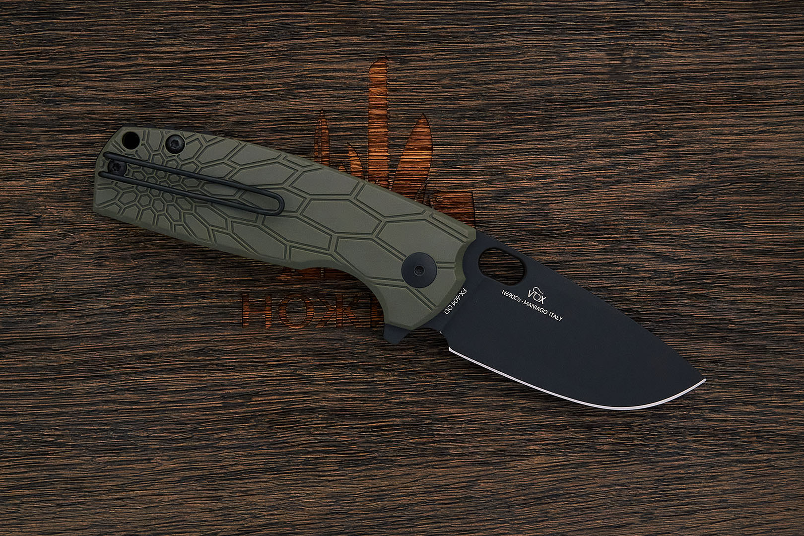 N690Co (N690) – коррозионностойкая немецкая инструментальная сталь производства Bohler-Uddeholm AG. Легирование кобальтом позволило улучшить сопротивляемость к высоким температурам и повысить общие механические качества.