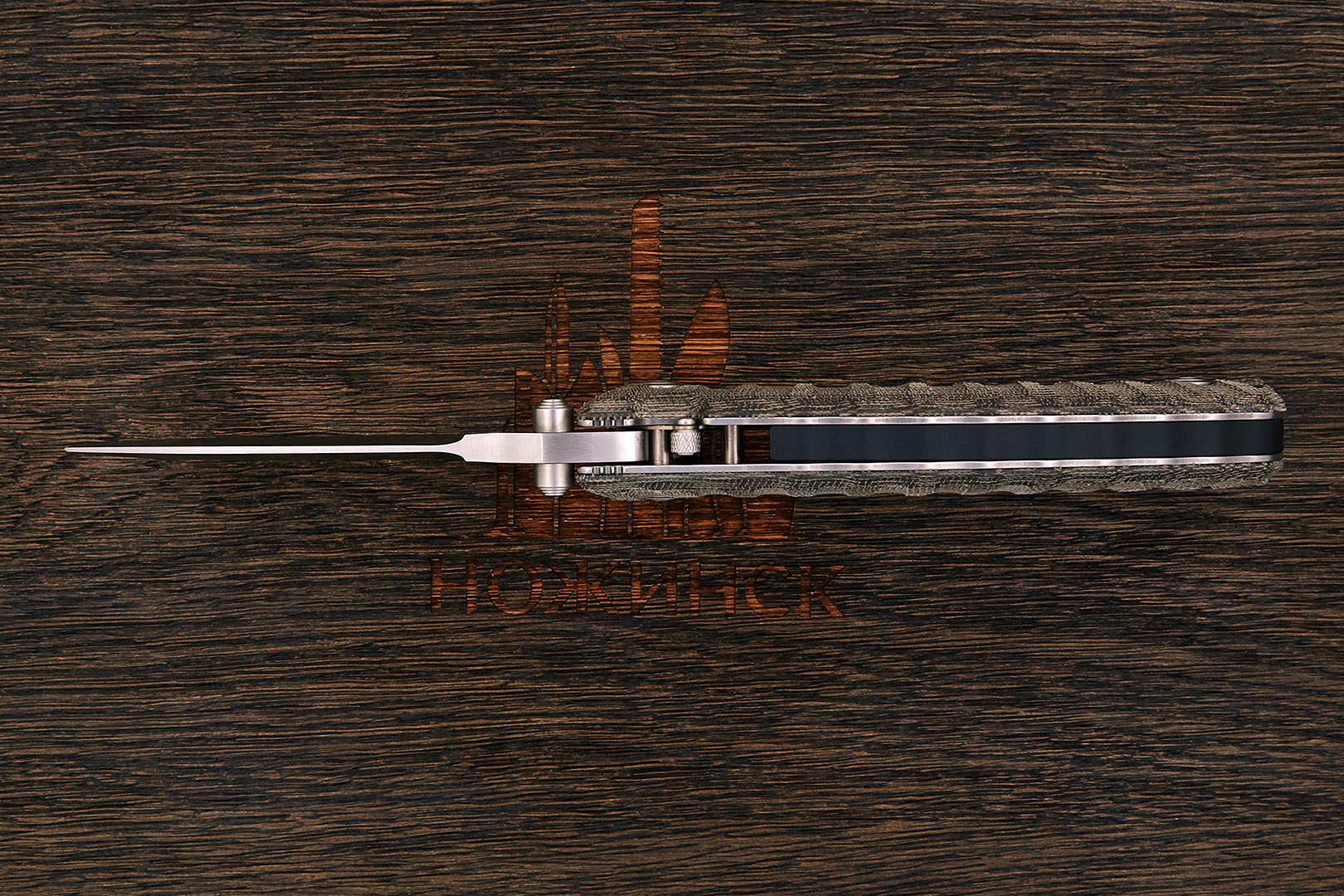 Клинок изготовлен из австрийской стали N690Co, невероятно устойчивой к коррозии, щелочам, солям и другим агрессивным средам. За счет добавления в эту сталь кобальта клинок получается высокоустойчивым к боковым нагрузкам. Твердость по Роквеллу – 60 HRC.