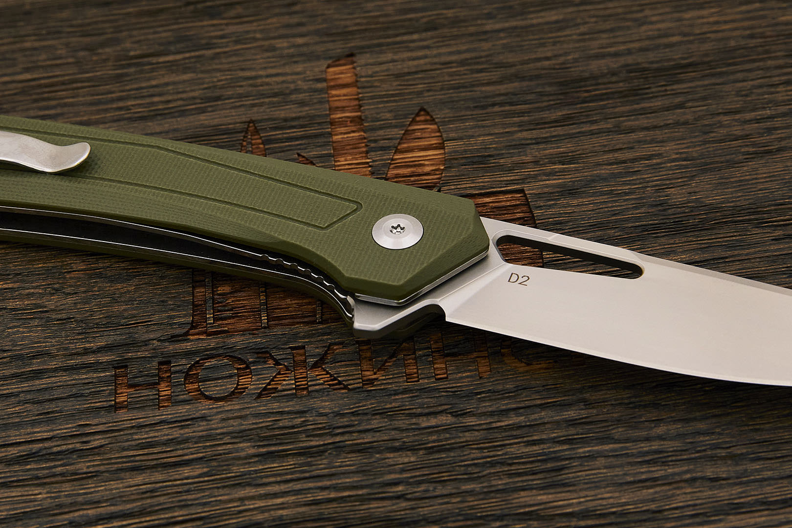 D2 – условно коррозионностойкая штамповочная сталь, изобретена в США в 30х гг, теперь производится по всему миру. Легирована молибденом, ванадием, кремнием, марганцем. Часто встречается в ножах среднего ценового сегмента. Твердость стали D2 составляет 57-62 HRC.