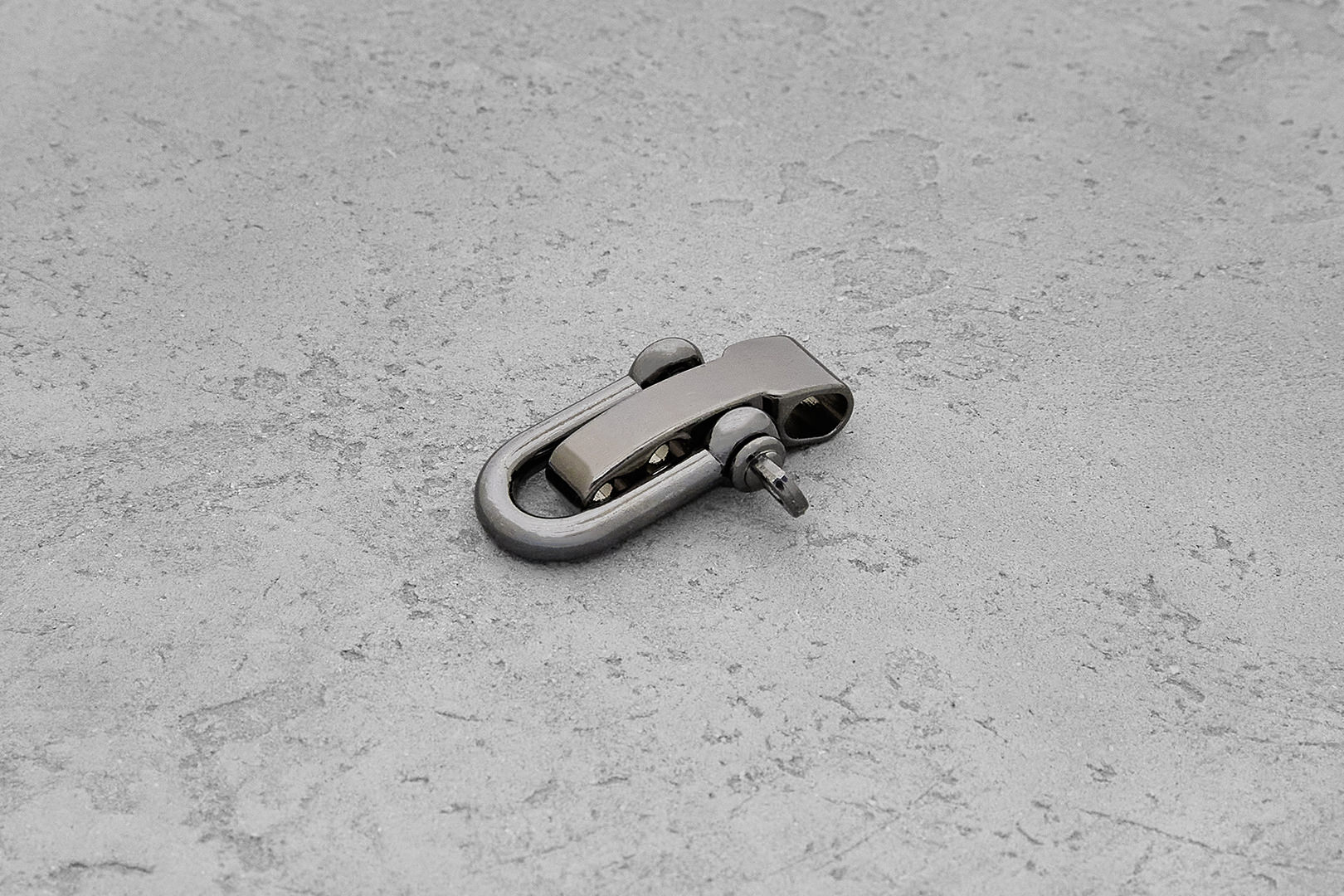 Металлическая скоба с 3-мя позициями для регулировки изготовлена из нержавеющей стали. Максимальные внешние габариты (19+10)×(40-55) мм, внутренний габарит собранной скобы 10×(3-17) мм. Для удобства ношения застежка имеет легкий прогиб.