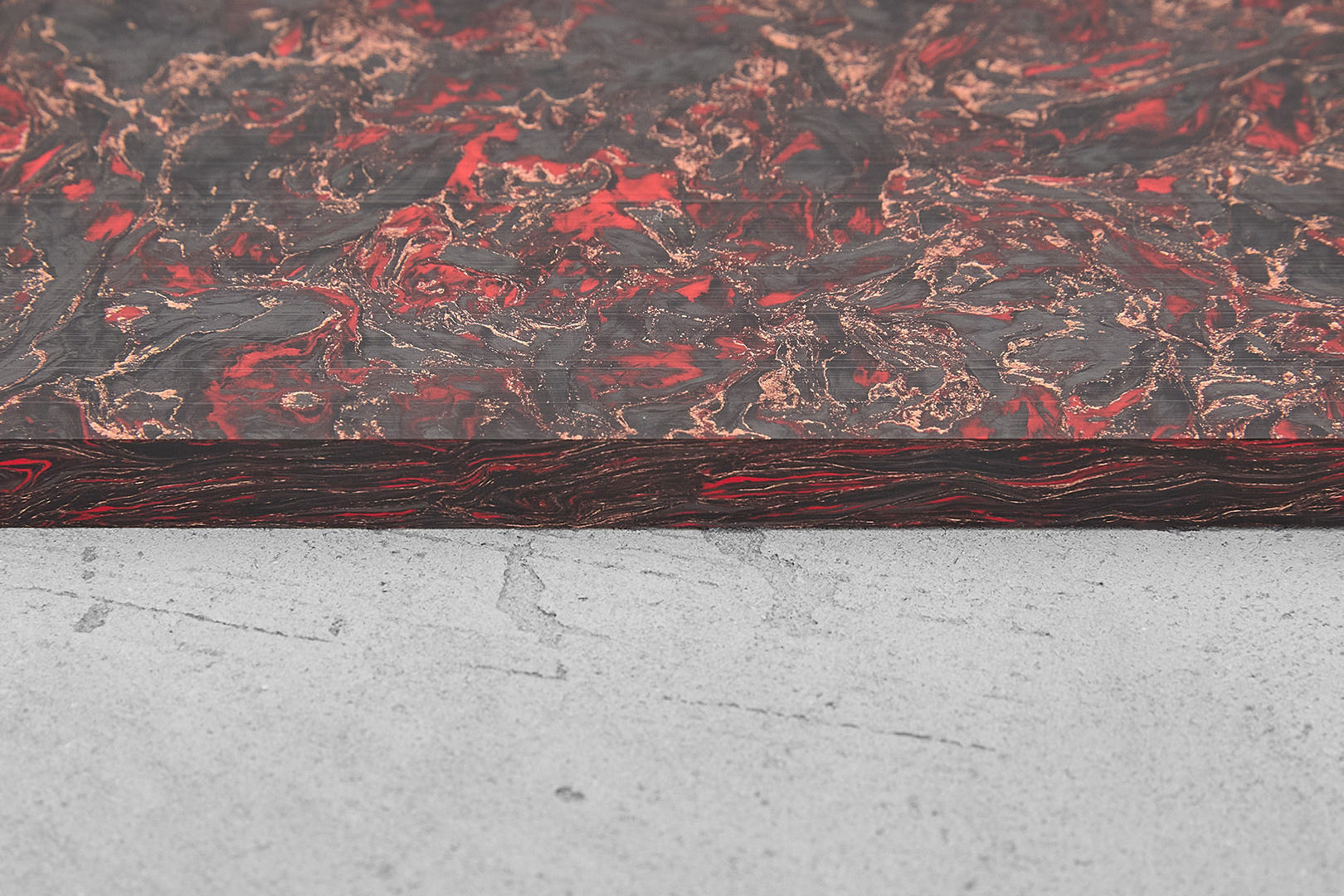 Карбон хаотичный, плашка 130x85x8мм, красный с медной пудрой | Арт Cb.MxH8.321