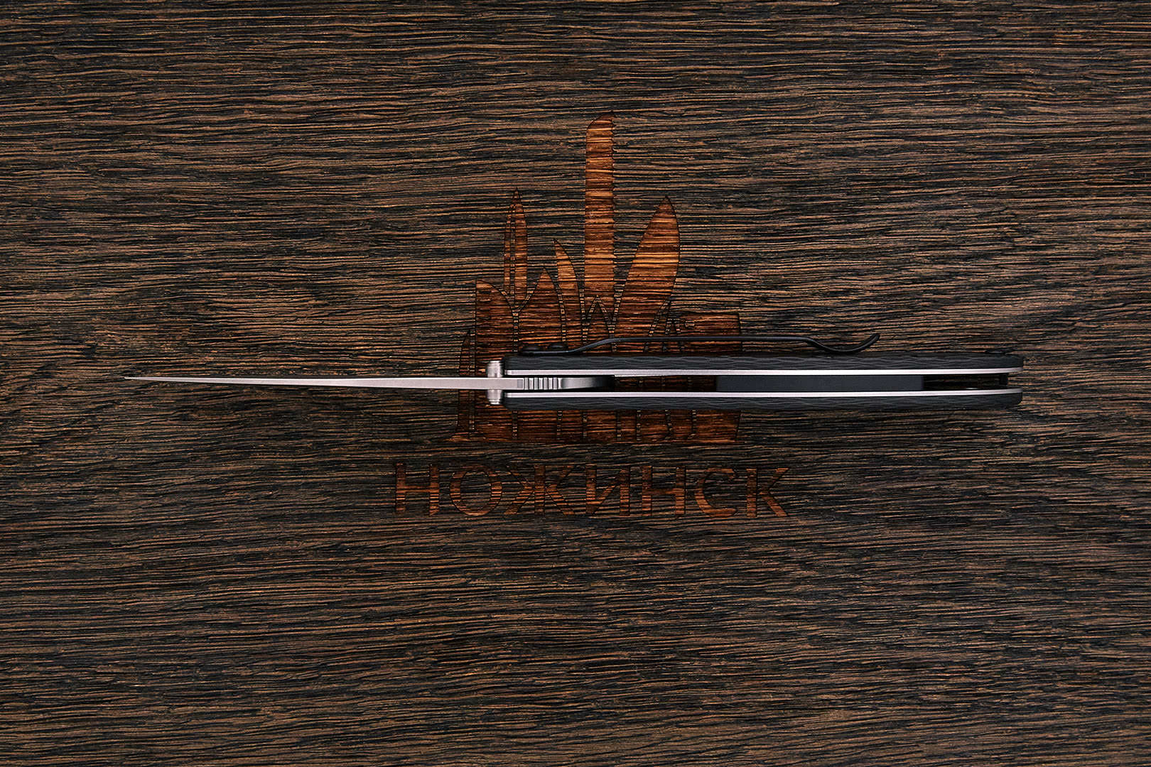 На сегодняшний день карбон один из лучших материалов для изготовления рукоятей ножей. Строгий по фактуре, нейтральный по цвету от светло-серого до почти черного, он практически не скользит в руке. Чрезвычайно прочный, абсолютно не впитывает ни воду, ни запахи, отлично переносит перепады влажности и температуры. Пожалуй, единственный его недостаток — сложная технология производства и, как следствие, высокая цена.