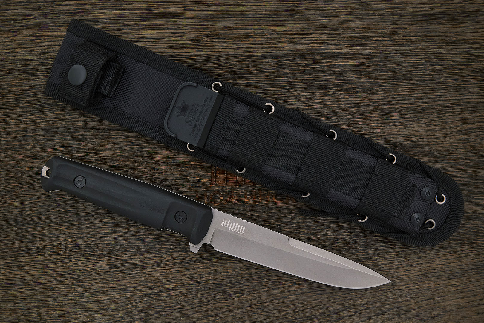Ножны состоят из многофункционального нейлонового подвеса и закрепленного в нем высокотехнологичного пластикового вкладыша, который надёжно фиксирует нож.