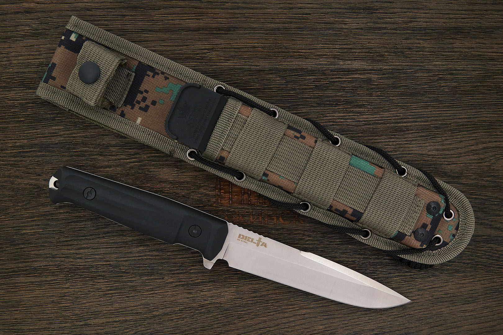 Ножи комплектуются ножнами, адаптированными под систему крепления MOLLE, которая предполагает бесшумное ношение и извлечение ножа. Многофункциональные ножныпозволяют носить нож как рукоятью вверх, так и рукоятью вниз, размещать его на поясе, элементах разгрузочной системы или на бедре.
