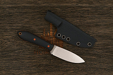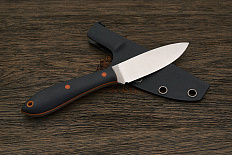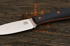 Конструкция ножа простая и прочная: накладки рукояти надёжно прикручены к цельнометаллическому хвостовику резьбовыми стяжками. Рукоять идеально совместима с тактическими перчатками. Продуманная 3D обработка накладок делает хват удобным и ладонь не скользит даже по влажной поверхности. Безопасность при применении ножа обеспечивается наличием выступа на пяте клинка и подпальцевой выемки.