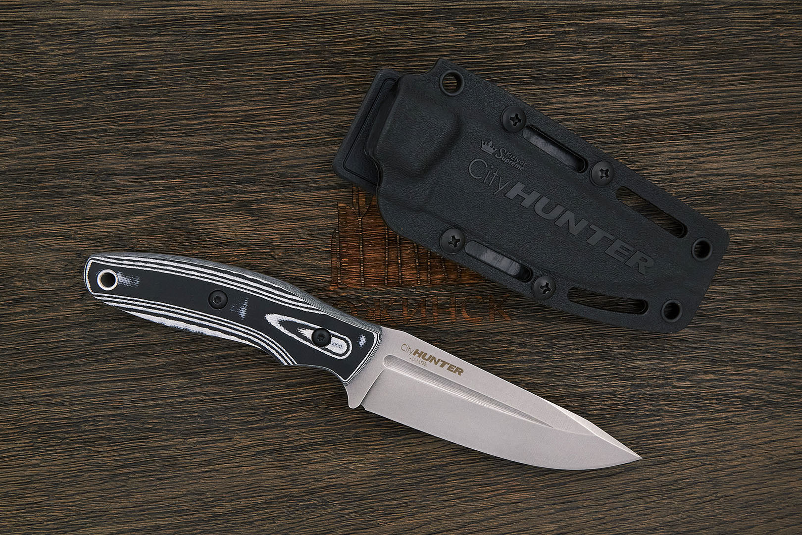 Каталог Ножи с фиксированным клинком Ножи Kizlyar Supreme Нож туристический Kizlyar Supreme Cityhunter, клинок 105мм, сталь AUS-8, рукоять G10 | Арт Cityhunter.AUS8 SW G10BWH PS