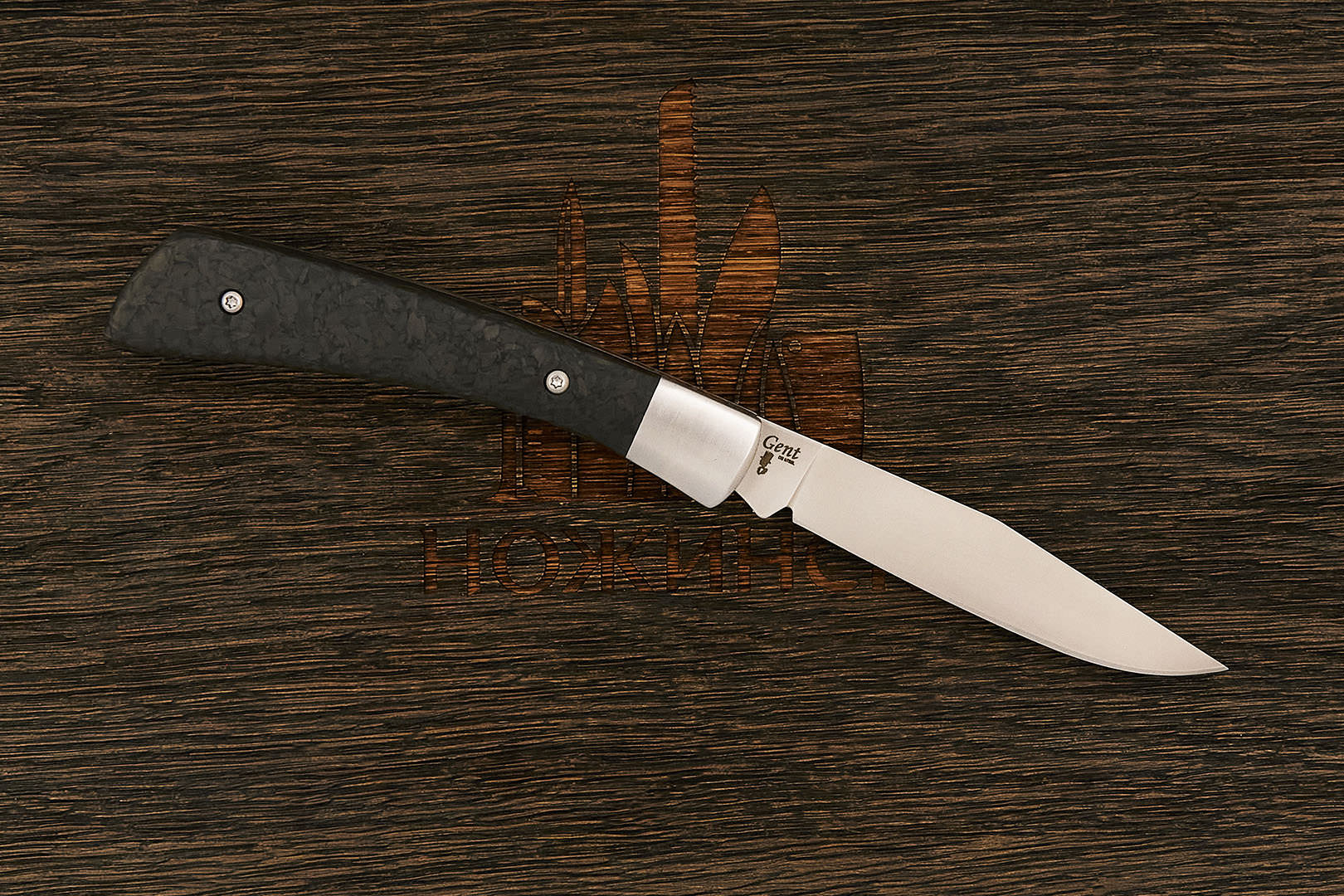 На сегодняшний день карбон один из лучших материалов для изготовления рукоятей ножей. Строгий по фактуре, нейтральный по цвету от светло-серого до почти черного, он практически не скользит в руке. Чрезвычайно прочный, абсолютно не впитывает ни воду, ни запахи, отлично переносит перепады влажности и температуры. Пожалуй, единственный его недостаток — сложная технология производства и, как следствие, высокая цена.