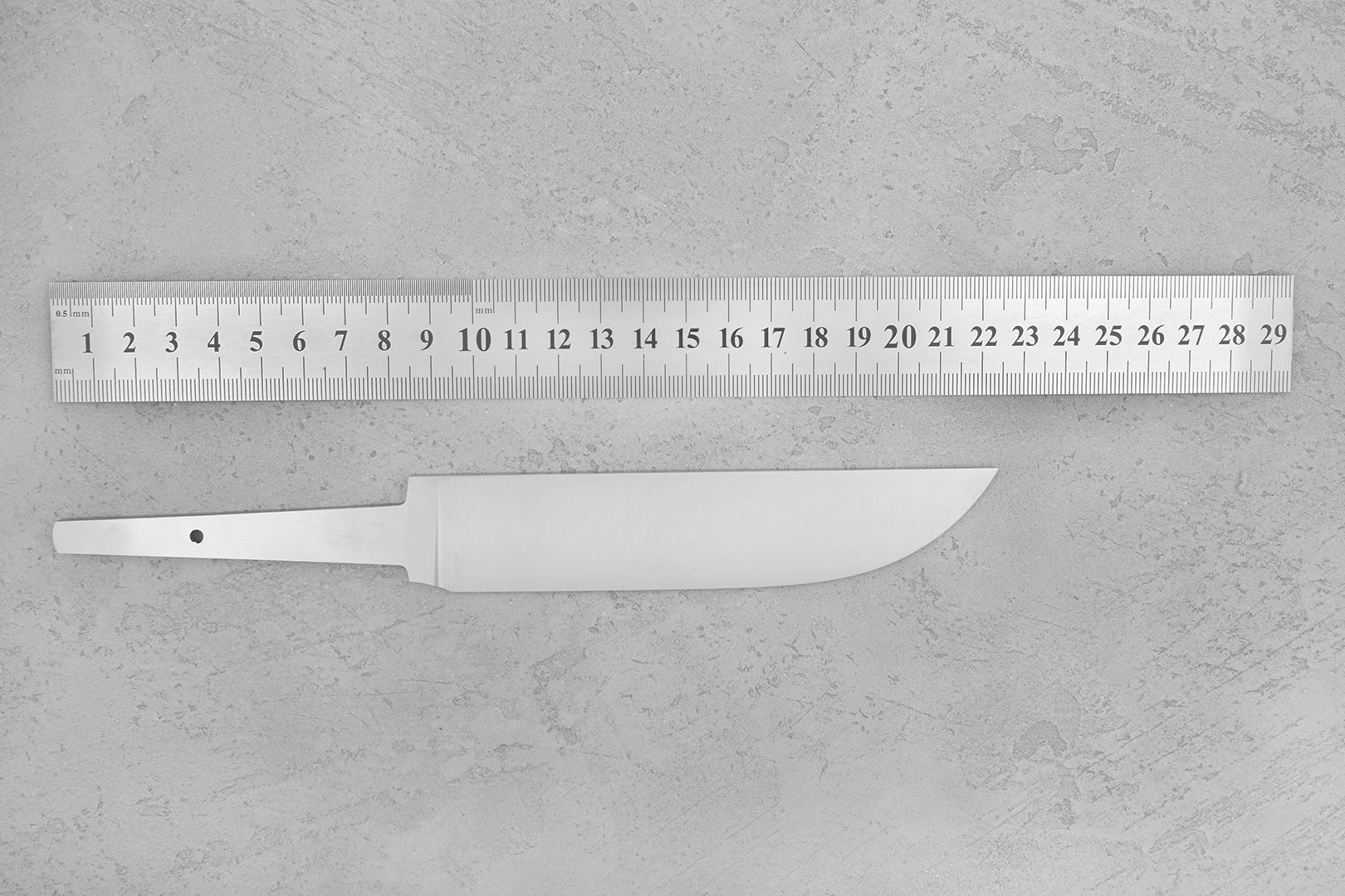 Толщина обуха 3,4±0,1 мм. Целевые параметры клинка (реальные могут незначительно отличаться) 140х28 мм, длина хвостовика 85 мм. Спуски прямые, сведение 0,2-0,3 мм. Клинок не заточен.