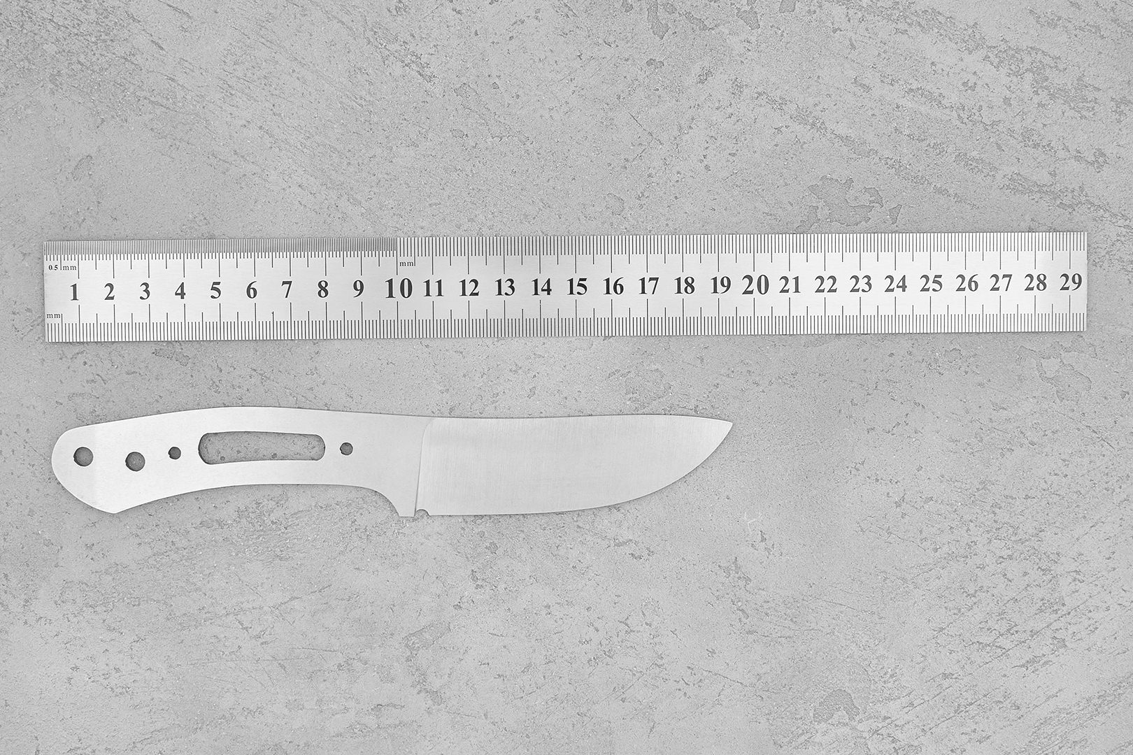 Толщина обуха 2,9±0,1 мм. Целевые параметры клинка (реальные могут незначительно отличаться) 95×27 мм, общая длина 194 мм. Диаметр монтажных отверстий 4 мм (требуют разворачивания в номинал). Сведение 0,2-0,3 мм, клинок не заточен.