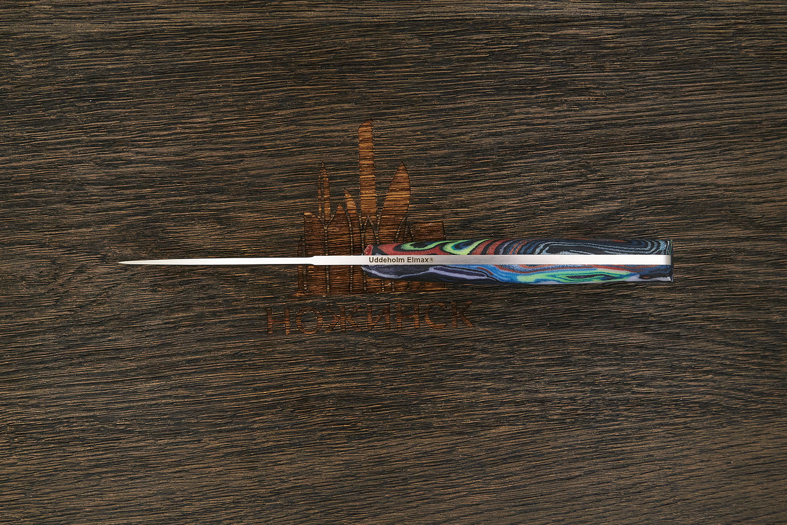 Elmax – одна из лучших инструментальных коррозионностойких порошковых сталей. Выпускается австрийско-шведской компанией Böhler-Uddeholm по технологии третьего поколения (superclean), что означает повышенную чистоту и вязкость. В составе карбиды небольшого размера, которые способствуют агрессивному резу. Сталь не капризна в заточке, долго удерживает остроту режущей кромки. При качественной термообработке Elmax всегда превосходит аналоги по вязкости, устойчива к воздействию внешней среды. Такой комплекс свойств обеспечивает изготовленным из нее ножам отличные потребительские качества.