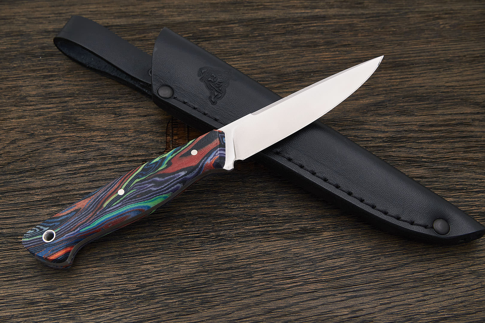 Микарта – очень прочный конструкционный материал, представляющий собой слоистый пластик на основе ткани и фенолформальдегидных или эпоксидных смол. Слои ткани пропитываются и склеиваются под высоким давлением и температурой. Благодаря совокупности потребительских свойств micarta (текстолит) прекрасно подходит для изготовления рукоятей ножей. Прочная, не впитывает ни воду, ни запахи, тактильная и высоко декоративная за счет разнообразия текстур и цветов. По теплопроводности микарта близка к натуральному дереву, что позволяет достаточно комфортно использовать ножи на сильном морозе.