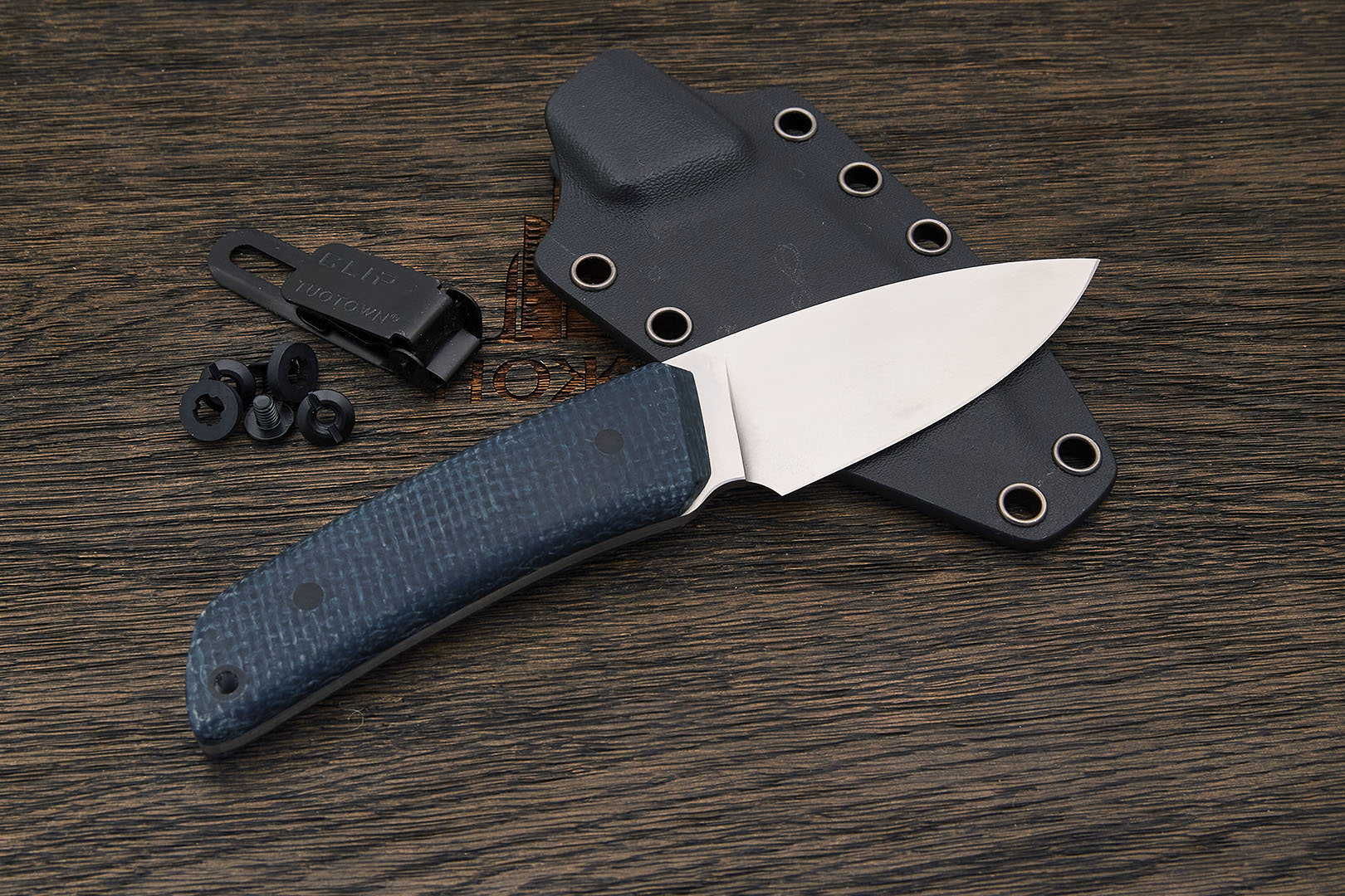 Микарта – очень прочный конструкционный материал, представляющий собой слоистый пластик на основе ткани и фенолформальдегидных или эпоксидных смол. Слои ткани пропитываются и склеиваются под высоким давлением и температурой. Благодаря совокупности потребительских свойств micarta (текстолит) прекрасно подходит для изготовления рукоятей ножей. Прочная, не впитывает ни воду, ни запахи, тактильная и высоко декоративная за счет разнообразия текстур и цветов. По теплопроводности микарта близка к натуральному дереву, что позволяет достаточно комфортно использовать ножи на сильном морозе.