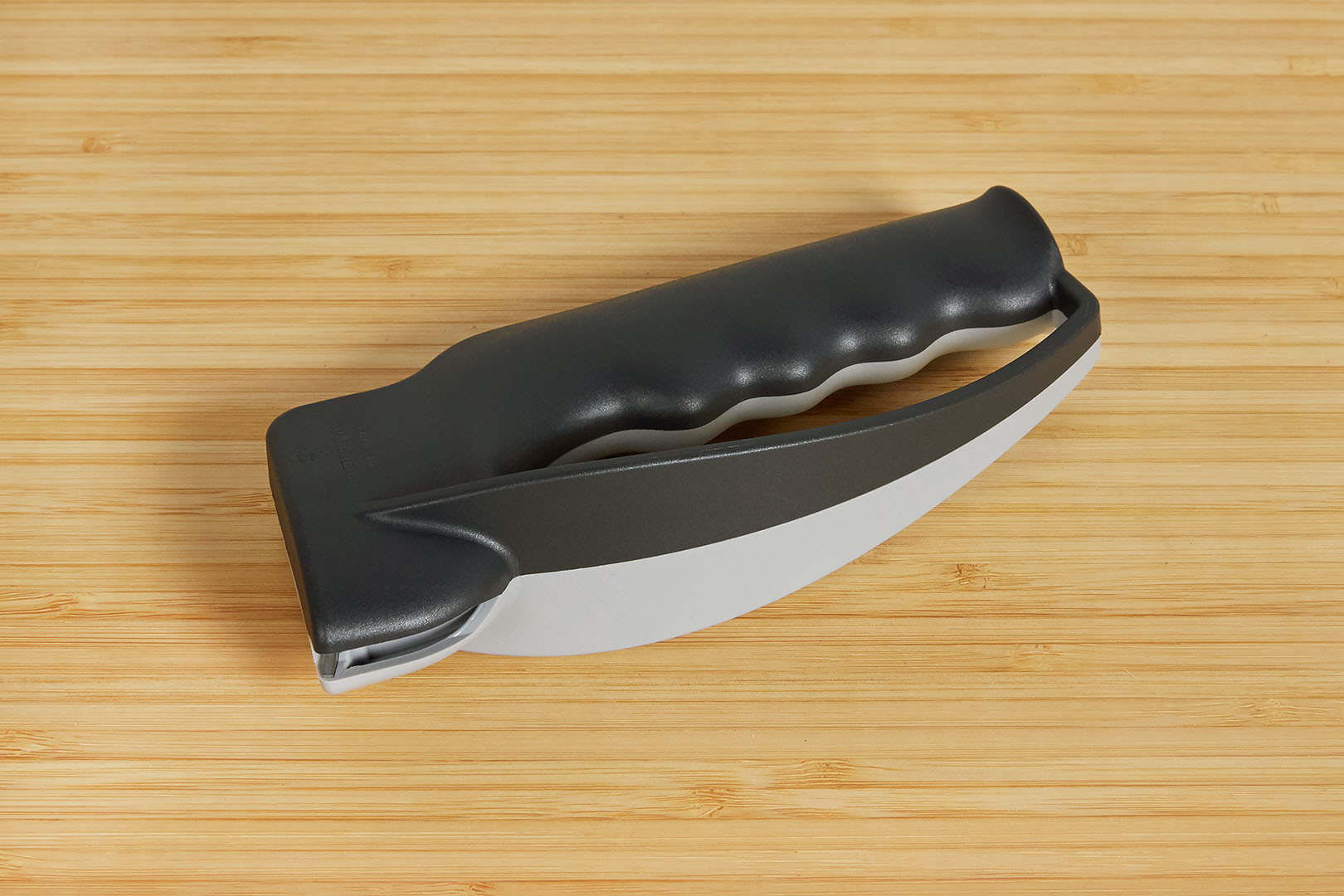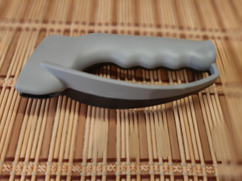 Купила данную точилку и не нарадуюсь! Пользуюсь ей уже 1.5 года. Когда получила, то в первый же вечер все ножи дома переточила))). Очень легко работать ей, пара движений и у Вас опять острый нож! Удобная эргономичная ручка, и самое главное рука защищена гардой (представим ,что это шпага), не страшно случайно пораниться.