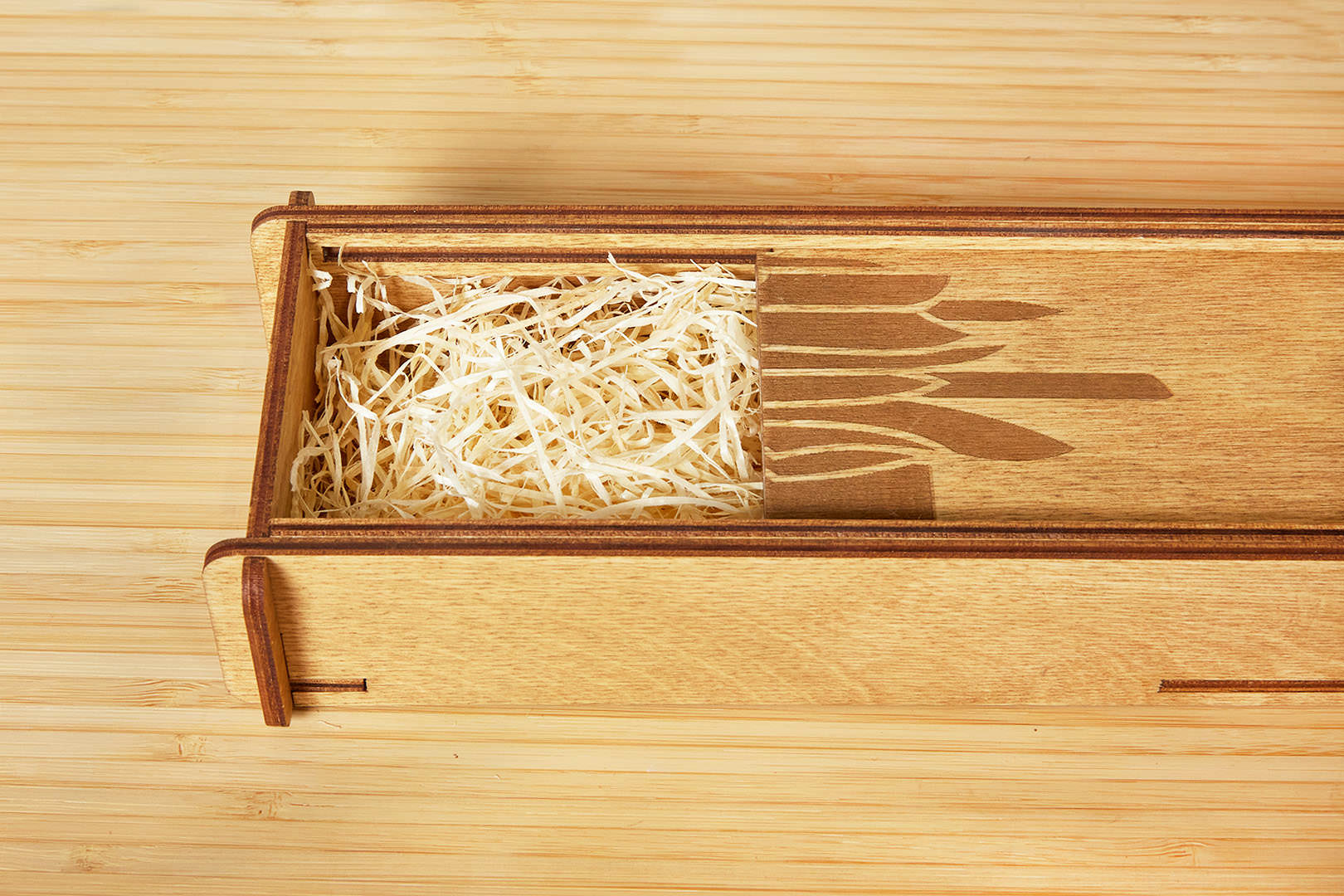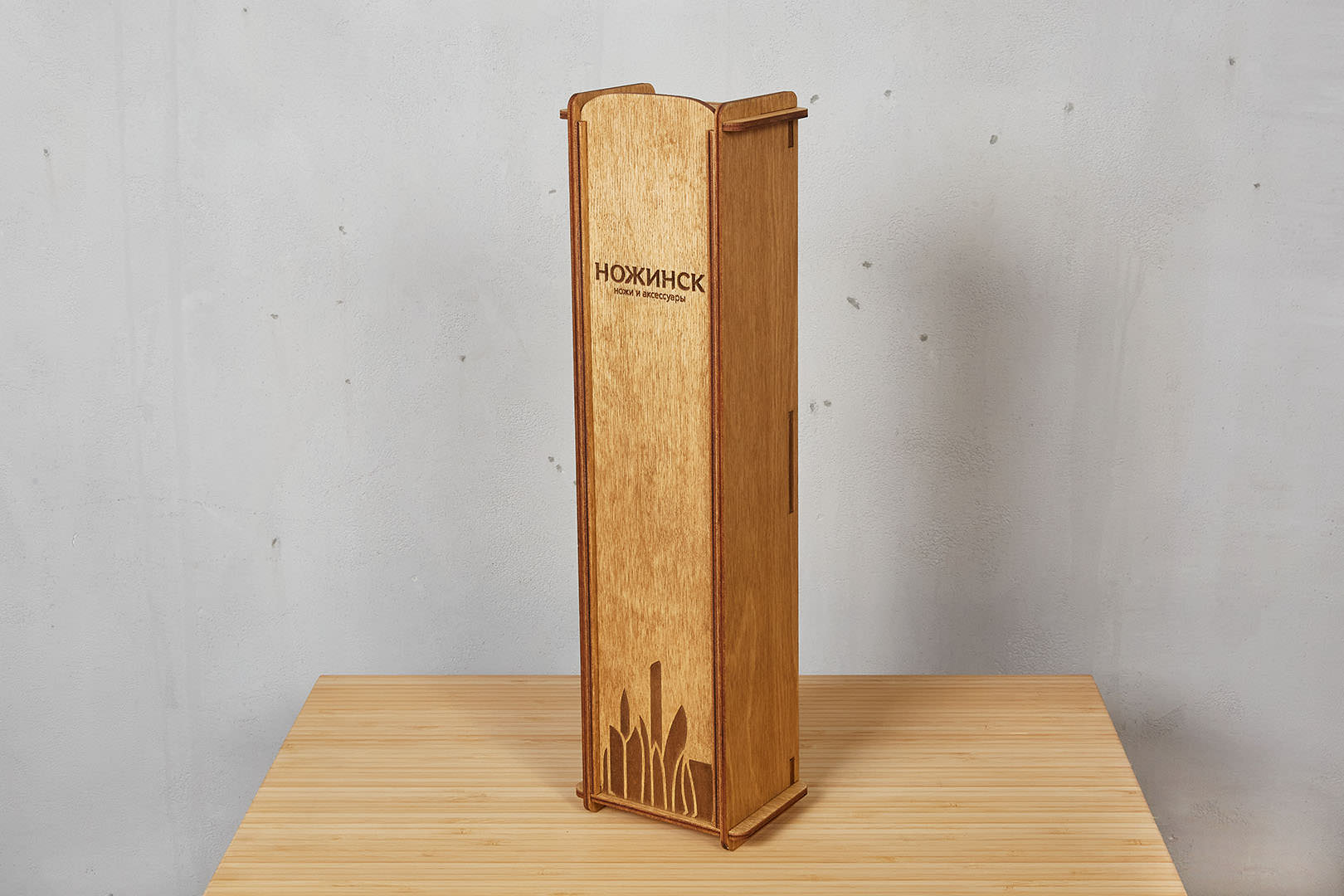 Коробки выполнены из фанеры 4мм и пропитаны маслом. Внутри наполнитель из натурального древесного материала, что сохранит нож от повреждений. Размеры указаны внутренние.
