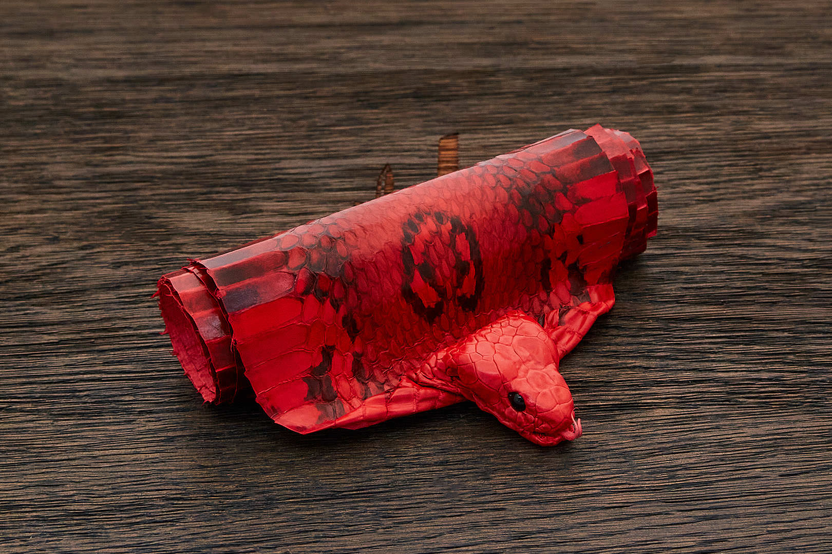 Шкурка змеи с головой, 980×70-110мм (красная глянцевая) | Арт Ls 15.17