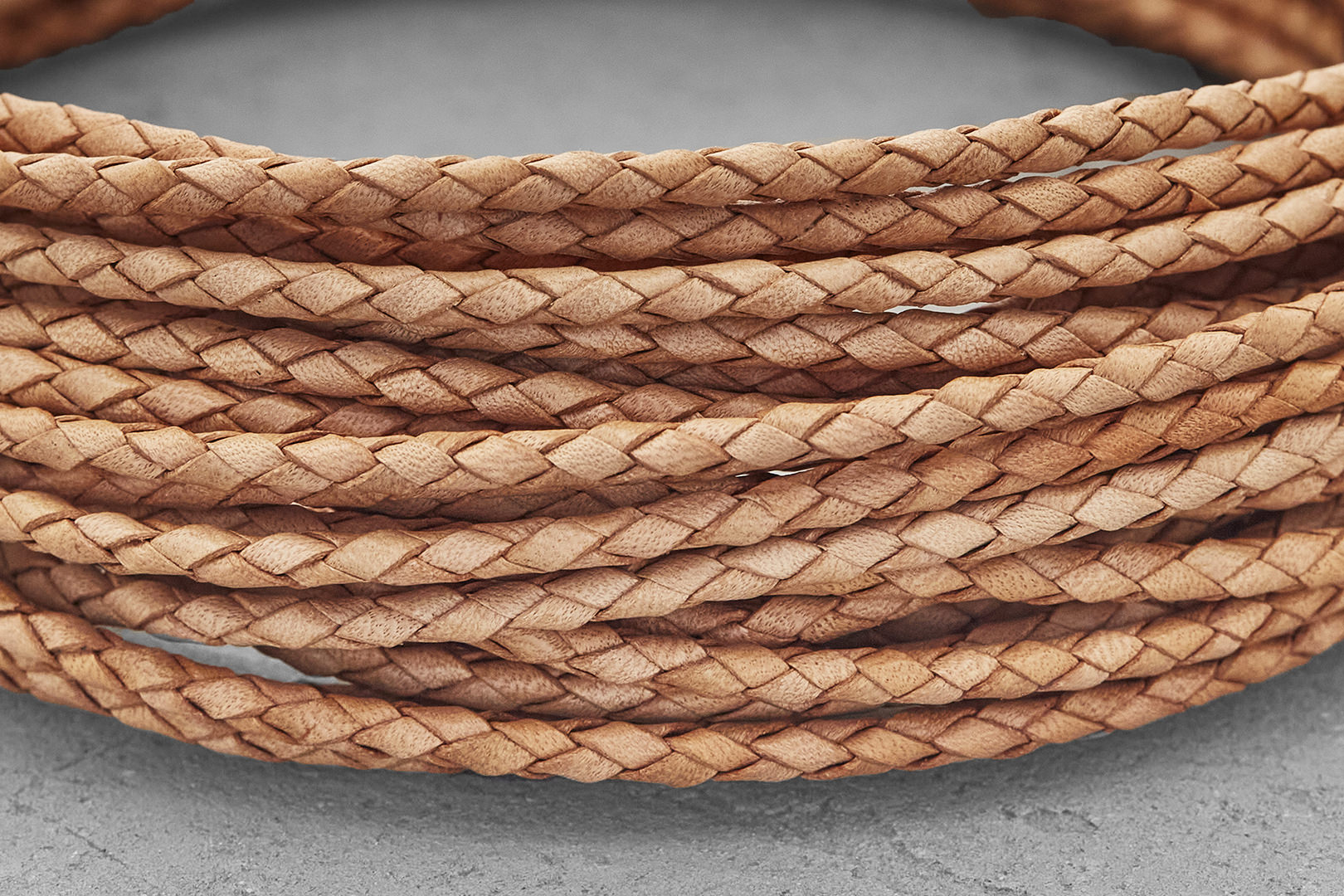 Каталог Паракорд Кожаные шнурки Кожаный плетеный шнурок 3,0мм (бежевый), 1 метр | Арт LLB.3/04